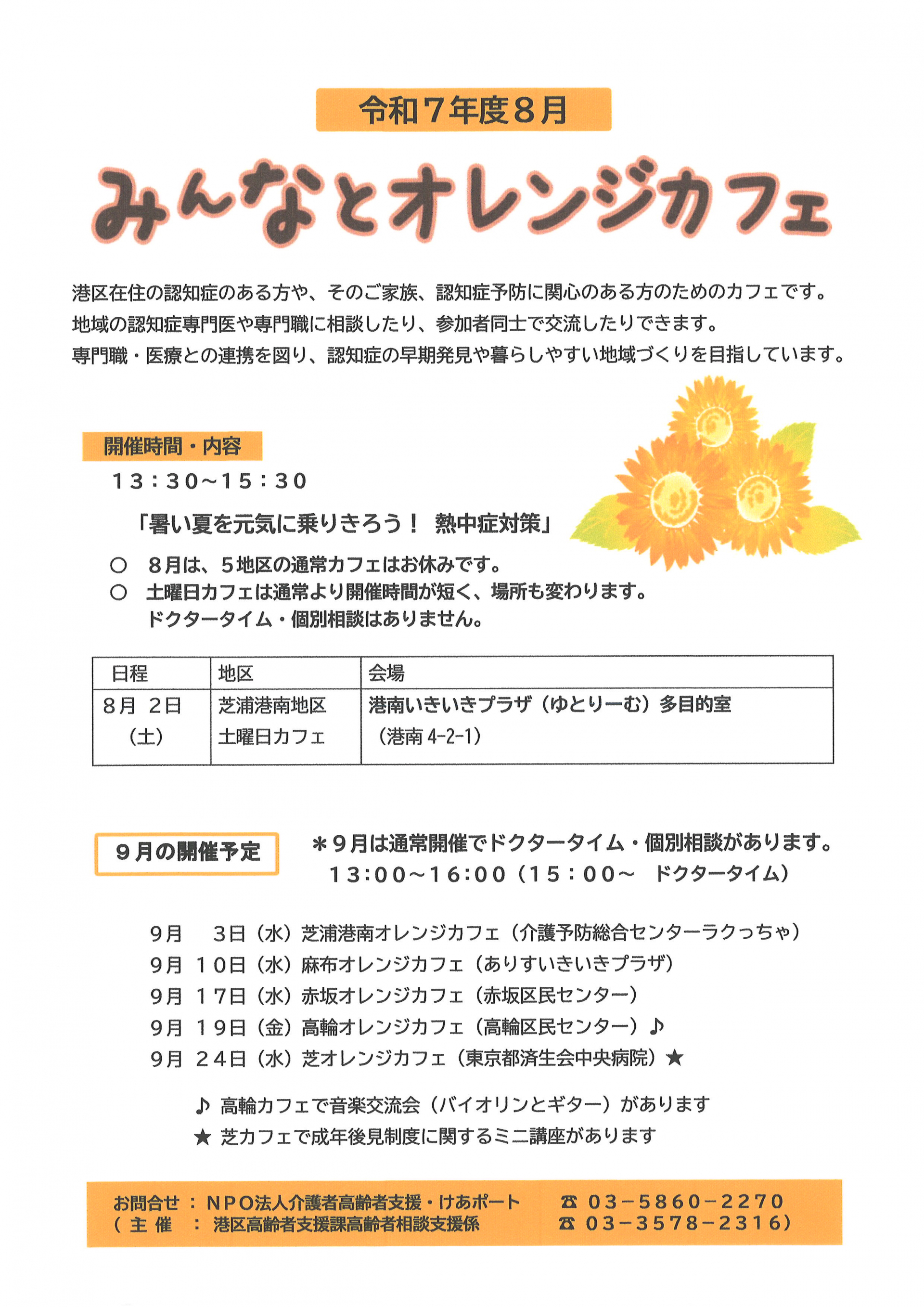 【白金包括】高輪地区 みんなとオレンジカフェ8月はお休みです!