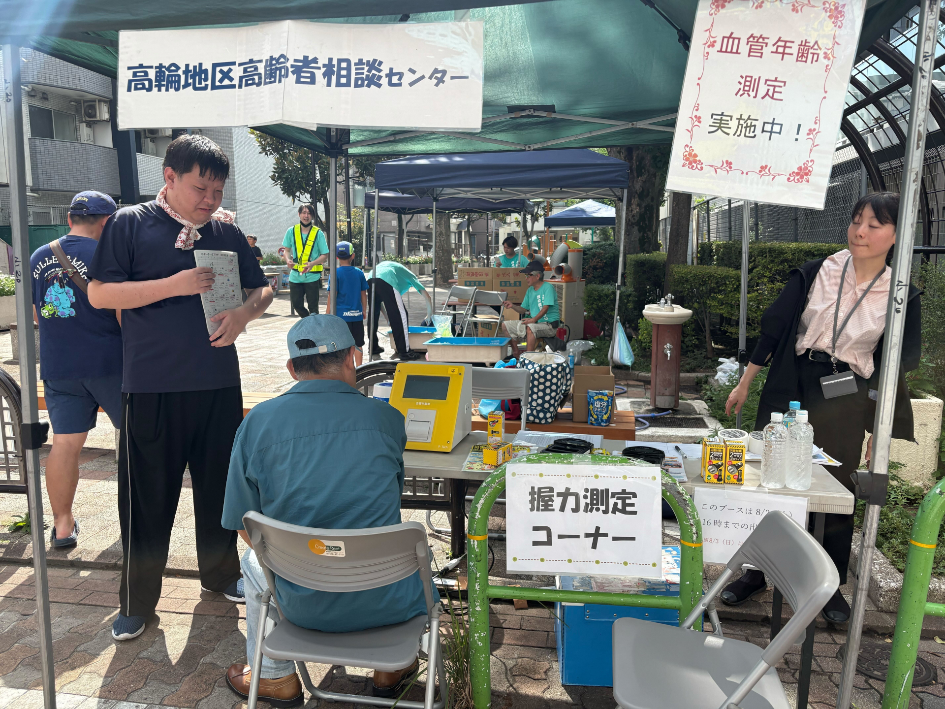 【白金包括】四の橋夏祭りにて、血管年齢測定・握力測定を行いました!