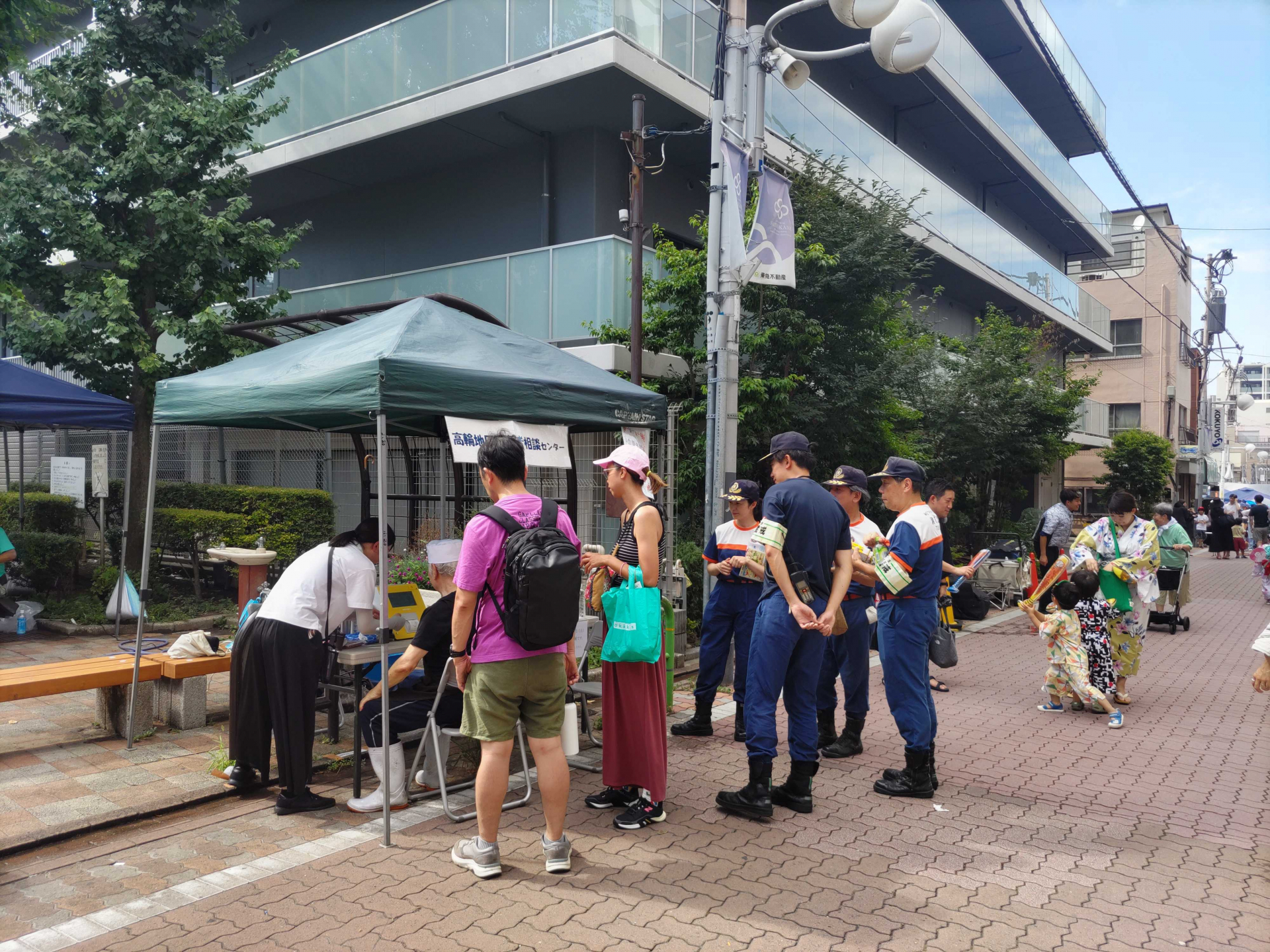 先日8/2、8/3の二日間で行われた『四の橋夏祭り』に、白金いきいきプラザと一緒に参加させていただき、今年度も血管年齢測定と握力測定を行いました!