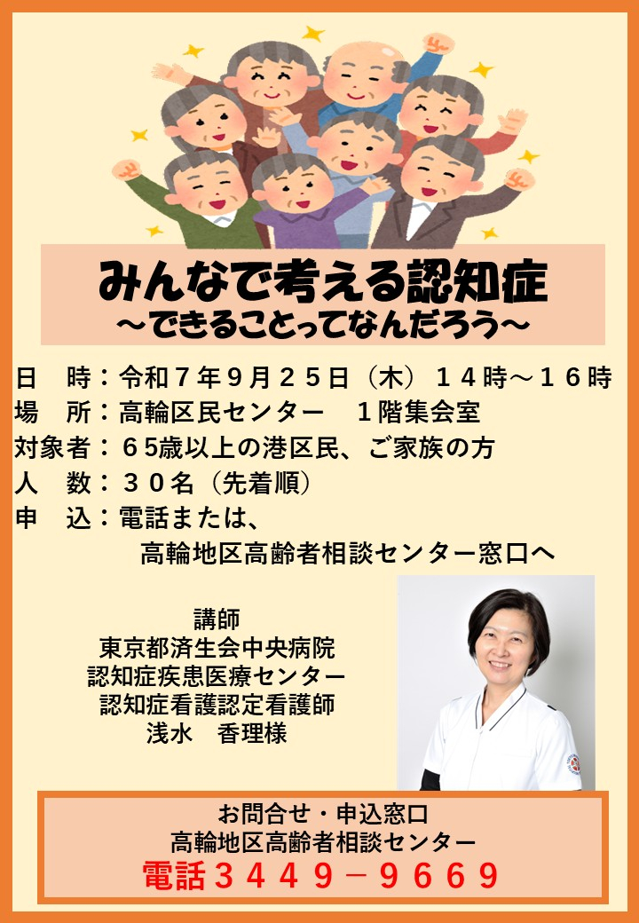 【白金包括】区民講座「みんなで考える認知症~できることってなんだろう~」を開催します!