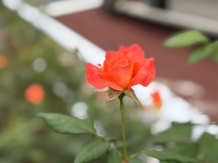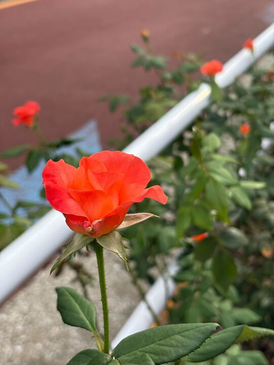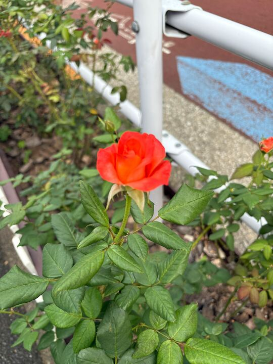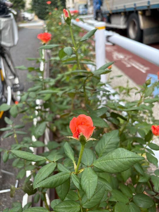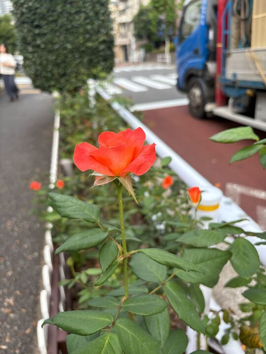 今回ご紹介するのは、高輪皇族邸周辺の花壇に植えられたオレンジ色のバラ