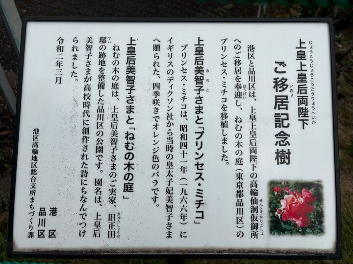 こちらのバラは、上皇后美智子さまのご実家、旧正田邸の跡地を整備した品川区の公園「ねむの木の庭」から