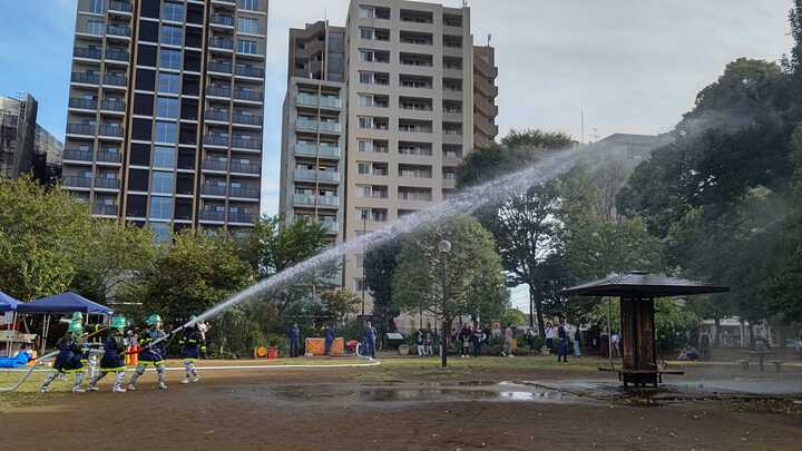 そして、綱引きに参加された後は放水訓練のイベントも見学されました。