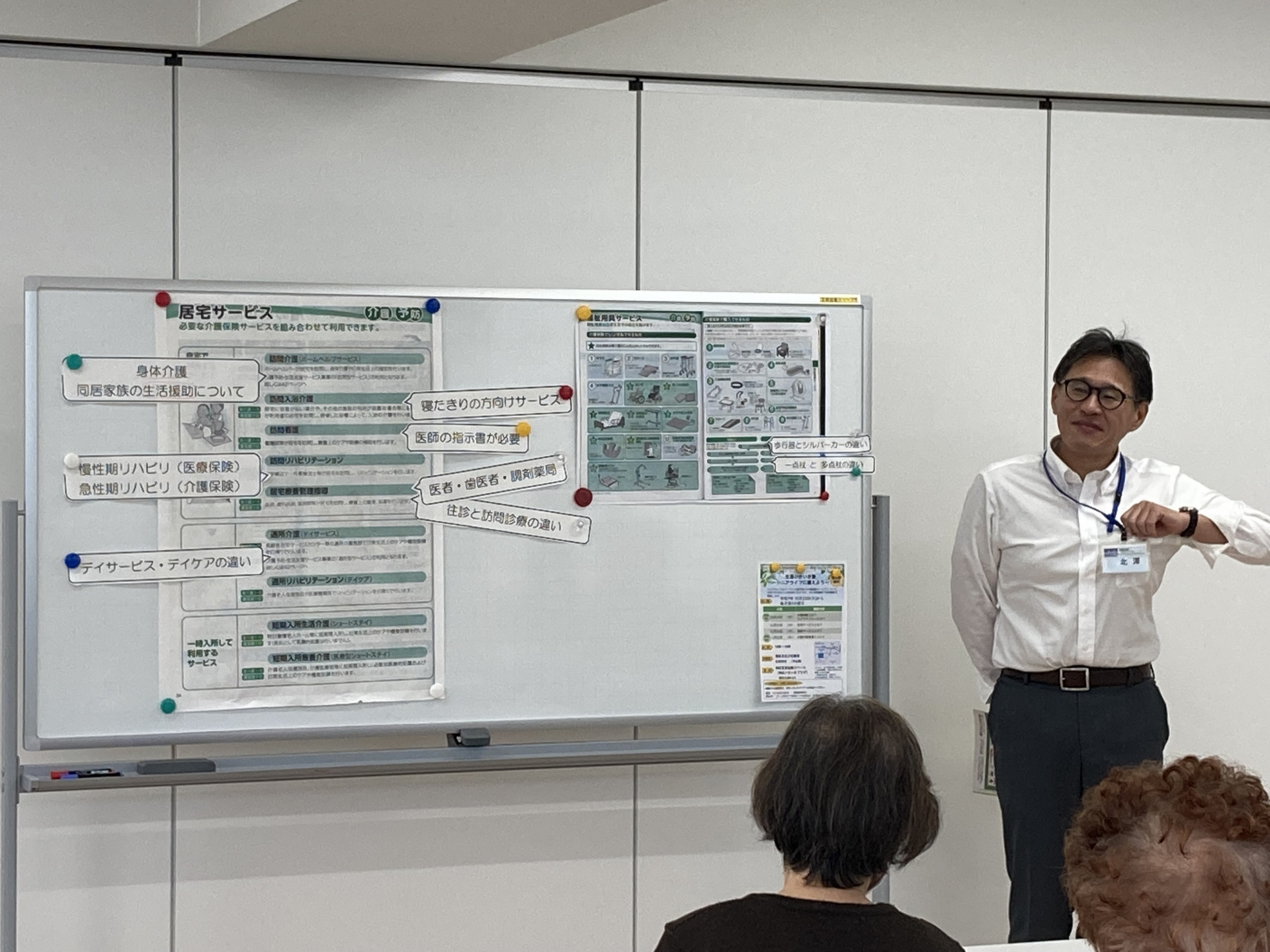 今回は在宅サービスについて高輪地区高齢者相談センターの職員が説明しました。