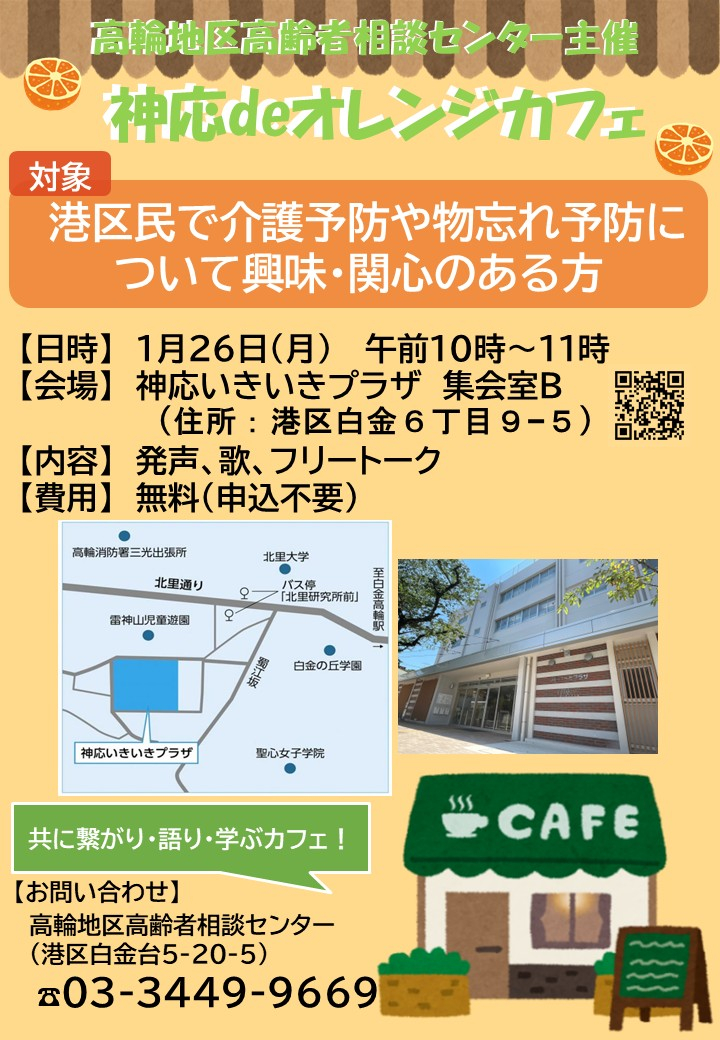 【白金包括】1月26日に神応いきいきプラザでオレンジカフェを開催します!!