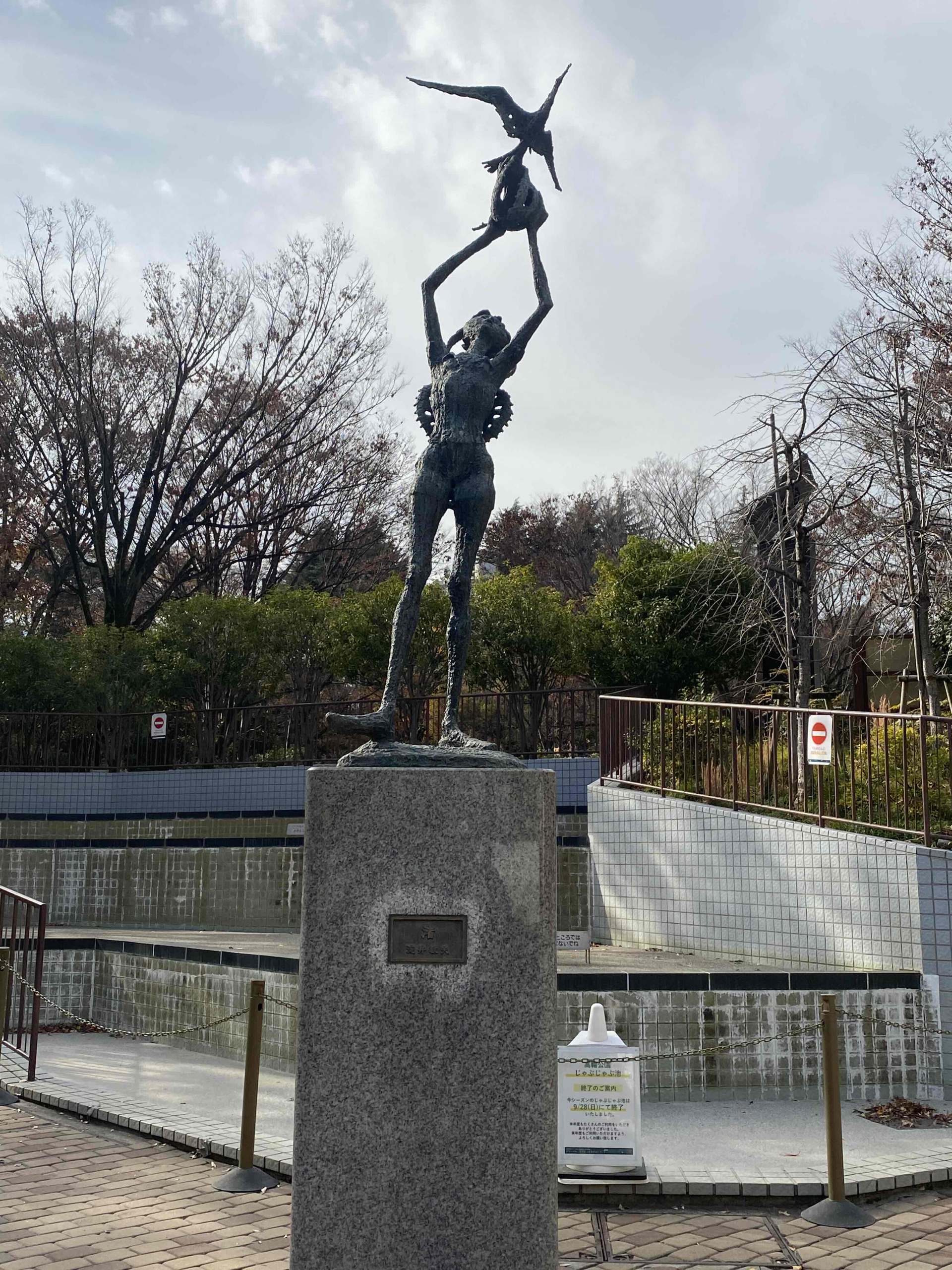 このシンボル、ブロンズ像「渚」があります。その向こう側が高輪公園です。階段を使わなくても、この左手に長いスロープがあるため、車いすでも園内に入ることができます。トイレもベンチもある広々とした公園です。