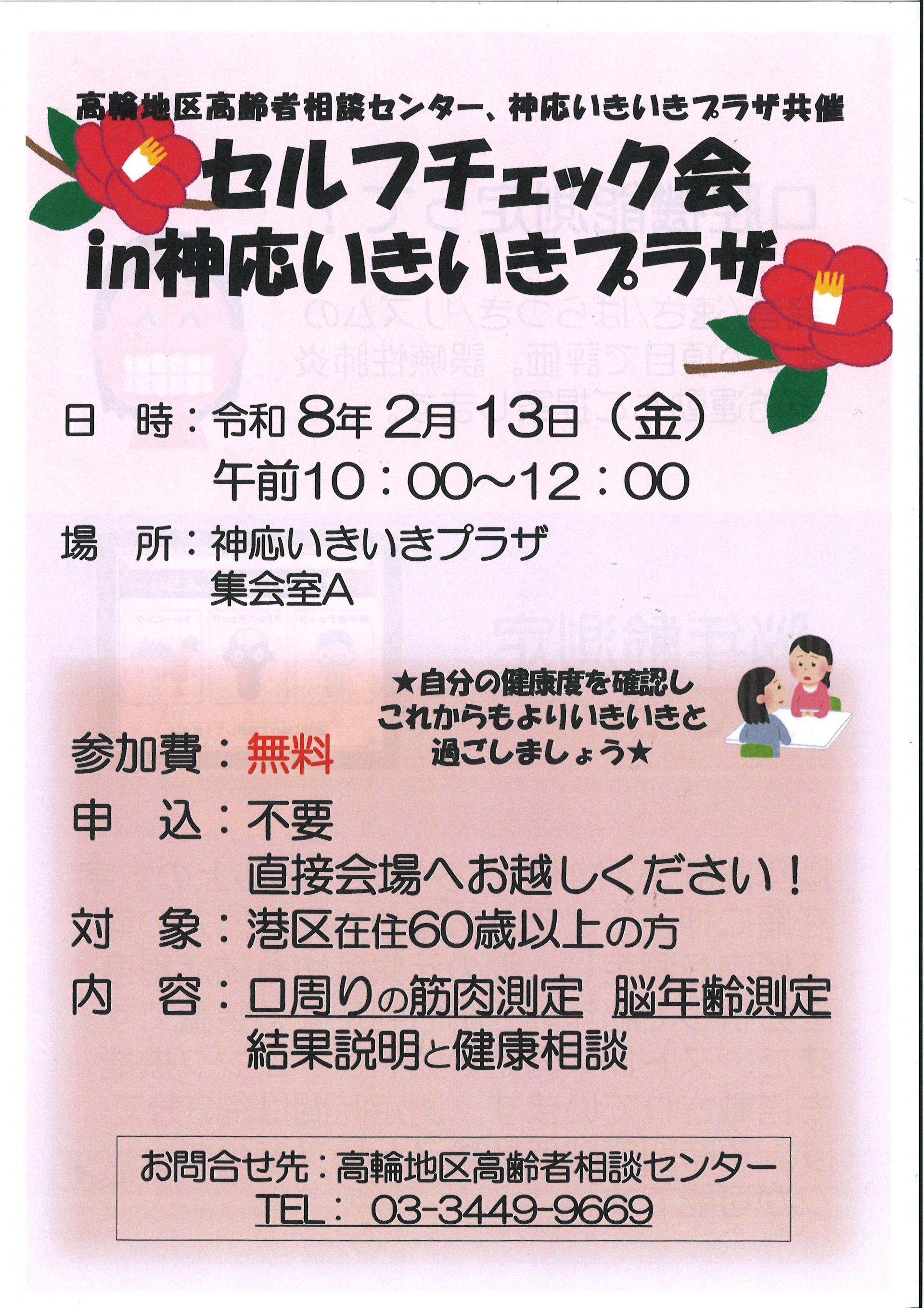 2月13日(金)に神応いきいきプラザにてセルフチェック会を開催いたします。