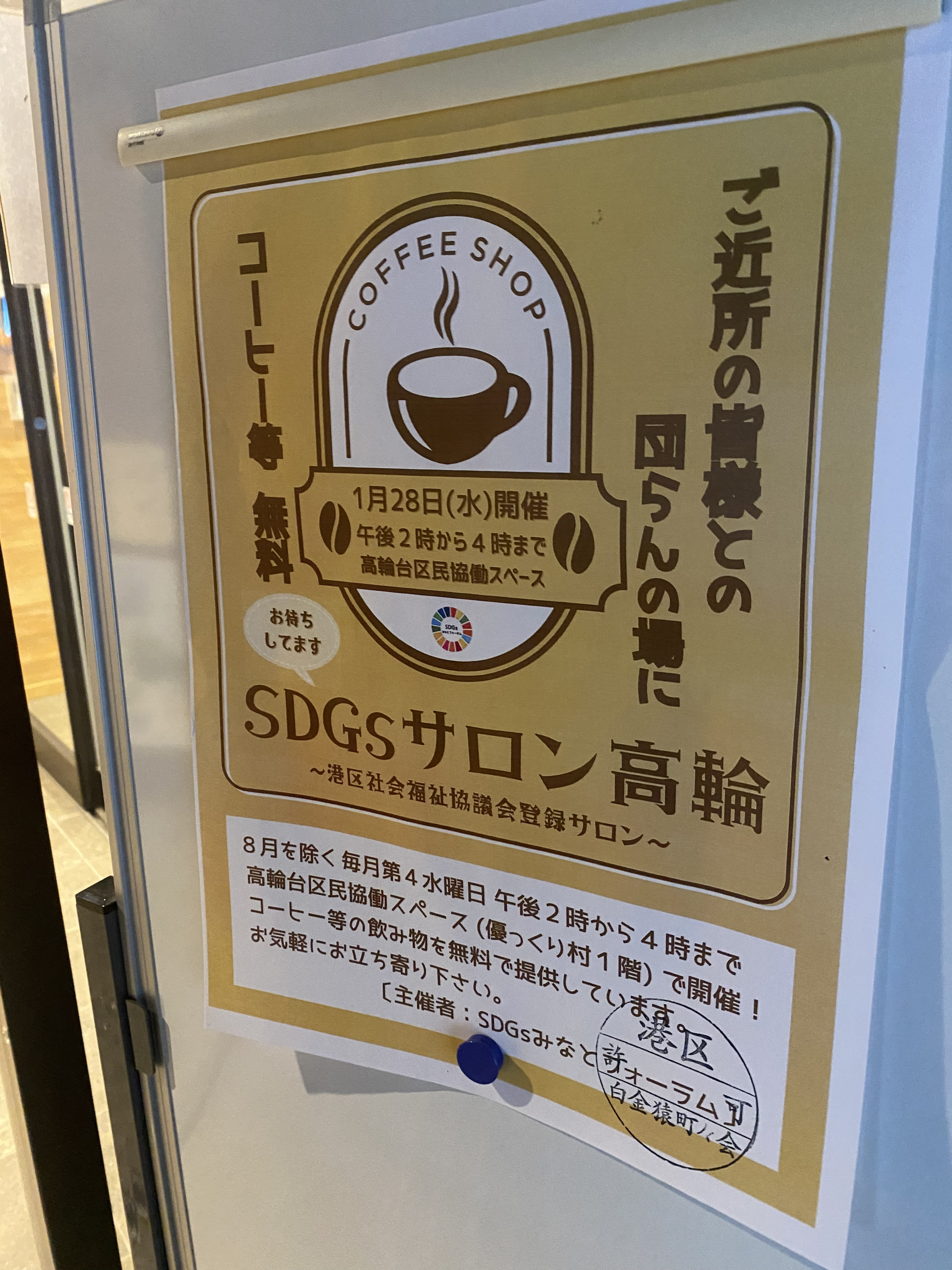 いかがお過ごしでいらっしゃるでしょうか。冷え込みがさらに厳しくなり、風も体を凍らせるような冷たさですね。この日も、曇り空でとても寒い日でしたが、「SDGs サロン高輪」にお邪魔させていただきました。毎月、第4水曜日に開催されています。場所は、高輪台区民協働スペース(東京高輪病院の2件ほど隣にある、優っくり村高輪台の建物内1階)、時間は14:00~16:00です。