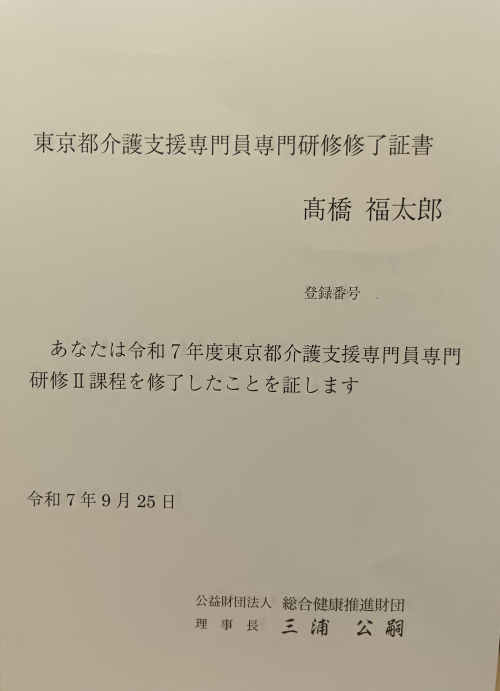 2025.11.03 【等々力の家居宅】介護支援専門員協会全国大会に参加いたしました! 活動報告 2025.11.03 【等々力の家居宅】雑誌の取材を受けました! 活動報告 2025.11.03 【等々力の家居宅】法人管理者研修に参加しました! 活動報告 2025.10.29 【等々力の家居宅】今年度も事例研究発表をいたしました! 活動報告 2025.10.23 【等々力の家居宅】ひがしラウンジにてフットケア講座が開催されました! 活動報告 2025.10.16 【等々力の家居宅】GPクリニック自由が丘勉強会に参加しました! 活動報告 2025.10.14 【等々力の家居宅】ケアマネジャー試験会場に応援に行ってまいりました! 活動報告 2025.10.02 【等々力の家】奉優会のCMができました! 活動報告 2025.10.02 【等々力の家居宅】フットケアイベントのお知らせ お知らせ 2025.10.01 【等々力の家居宅】奥沢・東玉川ダンディエクササイズにお邪魔しました! 活動報告 2025.10.01 【等々力の家居宅】奥沢ケアマネカフェに参加いたしました! 活動報告 2025.09.27 【等々力の家居宅】介護支援専門員資格更新研修が終了しました! 活動報告 2025.09.27 【等々力の家居宅】等々力地区多職種連絡会に参加しました! 活動報告 2025.09.12 【等々力の家居宅】新しいホームページ動画が完成しました! お知らせ 2025.08.29 【等々力の家居宅】ケアプラン点検を受けました! 活動報告 1 2 3 … 11