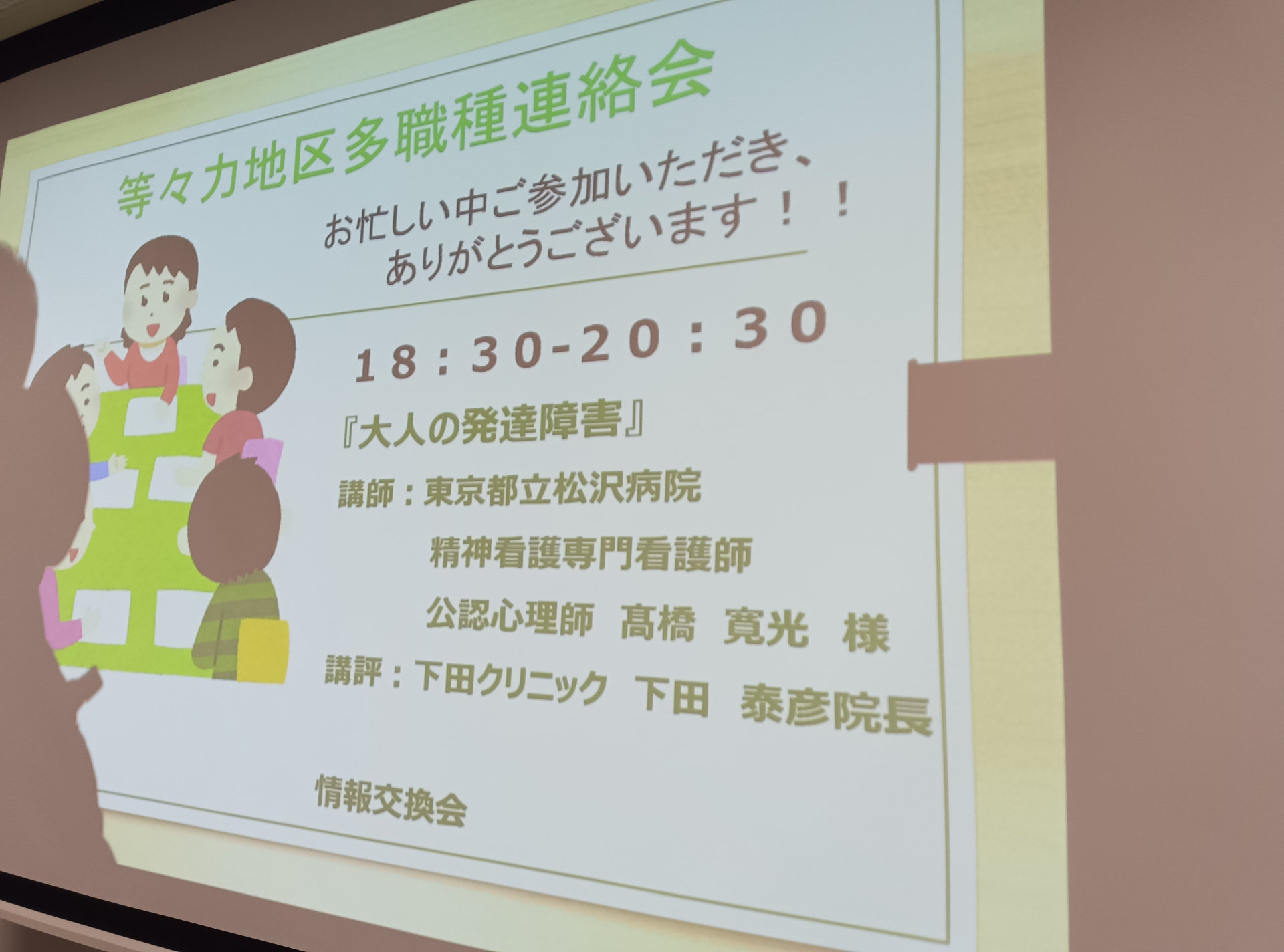 テーマは「大人の発達障害」という難しいテーマでしたが、松沢病院の先生に詳しく解説していただきました。