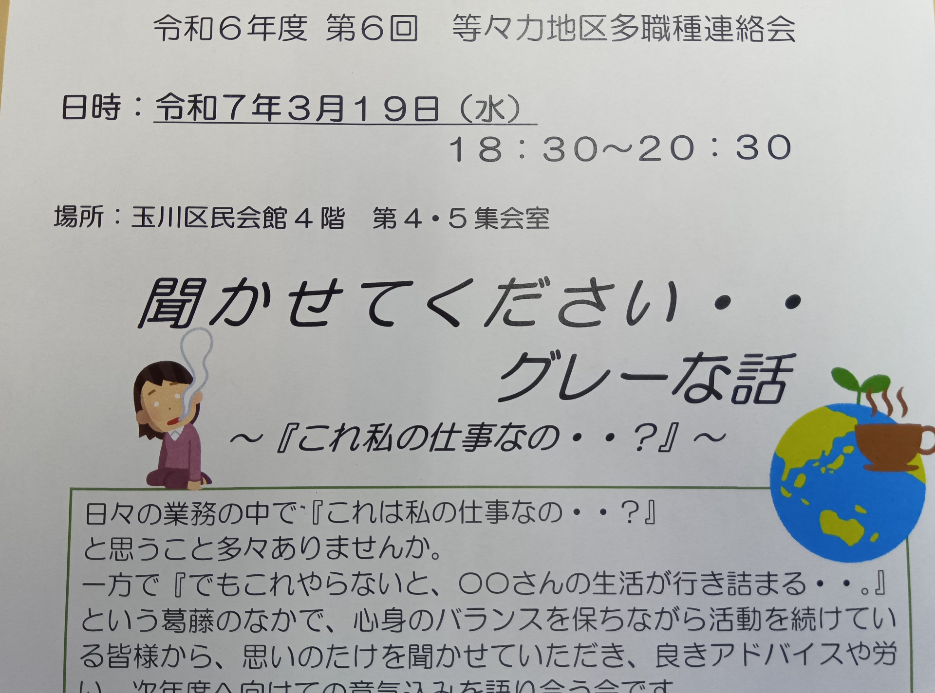 先日、等々力地区の多職種連絡会に参加し、今年度最後として最後にお話しさせていただきました。