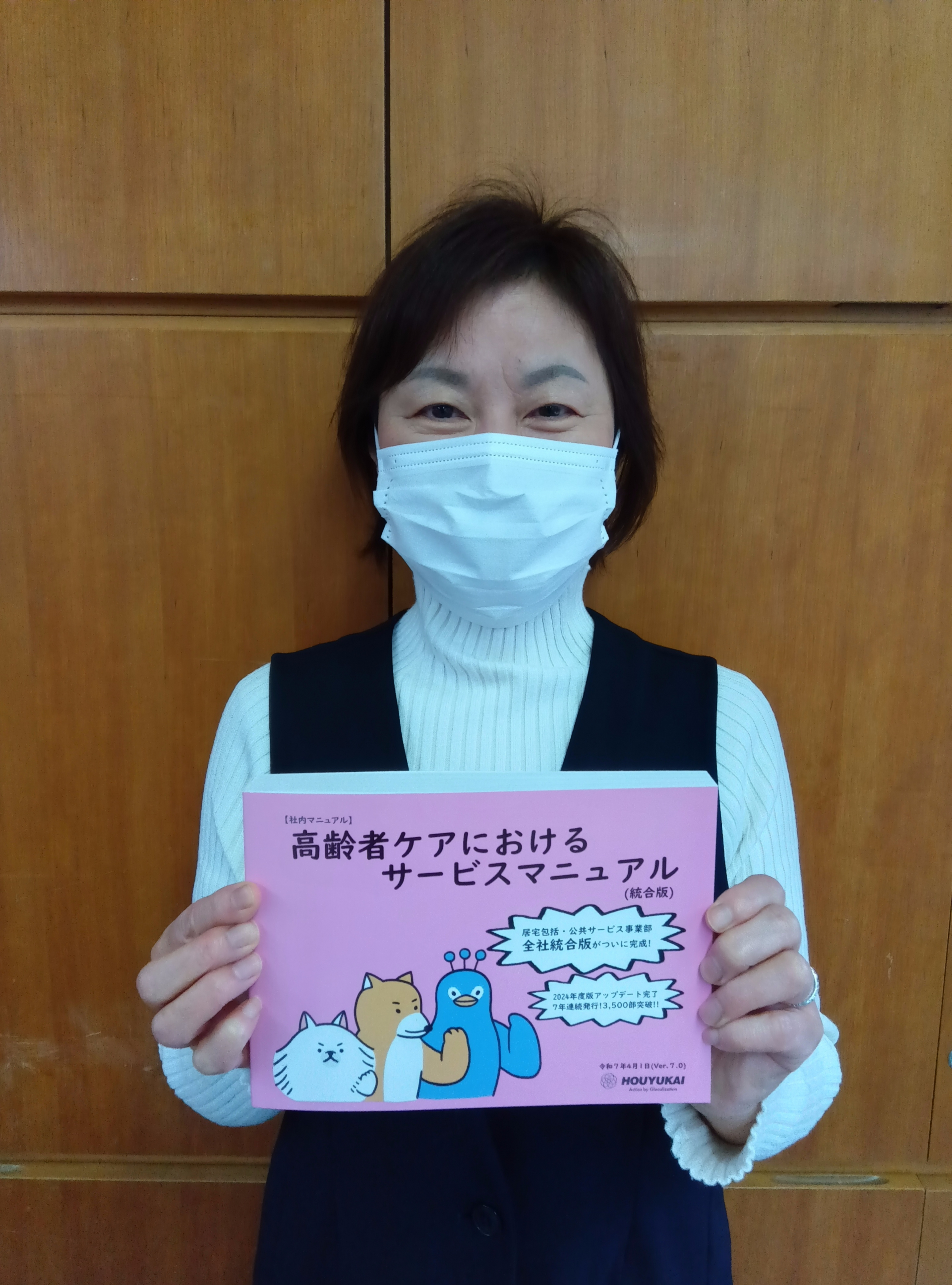 2025.04.07 活動報告 【等々力の家居宅】高齢者ケアにおけるサービスマニュアルが届きました! Tweet シェアする 新年度となり、法人より「高齢者ケアにおけるサービスマニュアル」が配布されました。 初心にかえって都度参照して、今後の業務に励みたいと思います。 等々力の家 KY 前の記事 2025.04.08 活動報告 【等々力の家居宅】人事発令をお渡ししました! 次の記事 2025.04.03 活動報告 【等々力の家居宅】防災訓練の動画をご覧ください! 一覧へ戻る