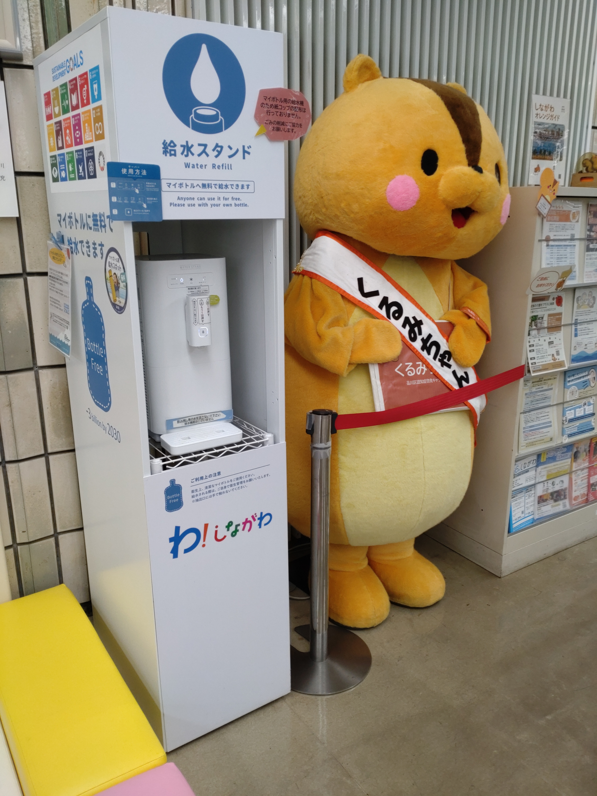 区役所ではSDGsでペットボトル削減を目指し、マイボトルへの給水ができるように給水スタンドが設置されています。