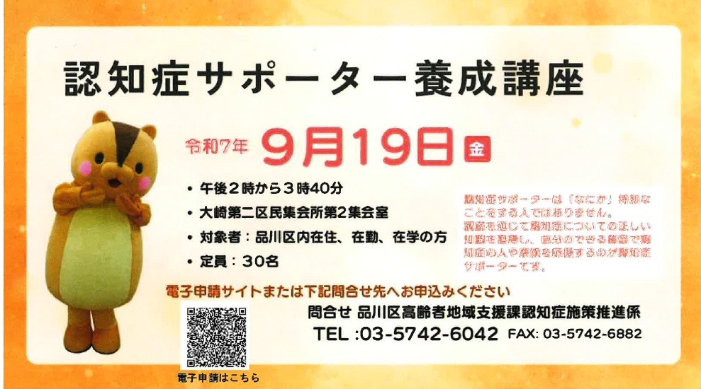 <申込> 申請サイトまたは、品川区高齢者地域支援課認知症施策推進係(TEL:03-5742-6042)