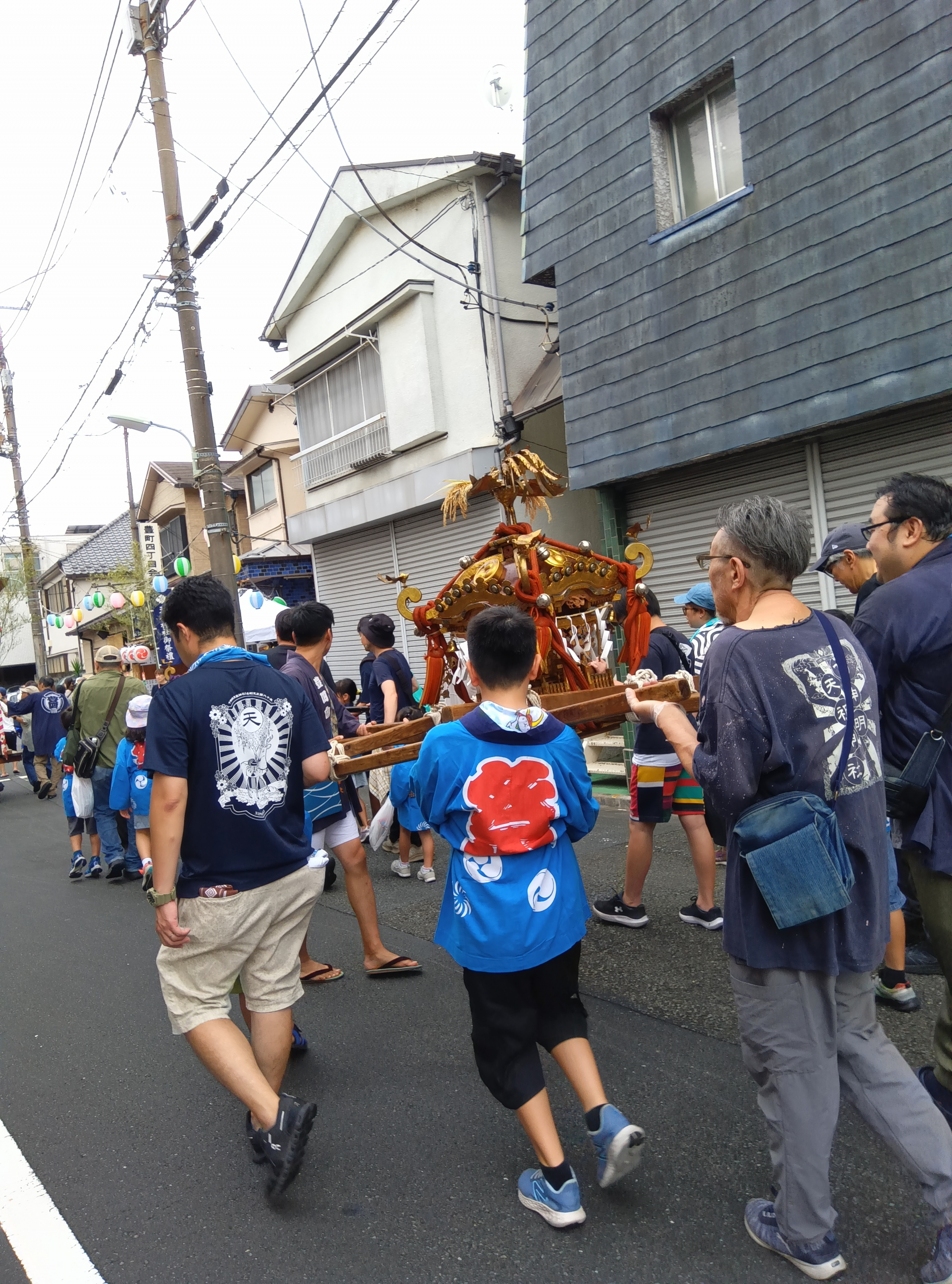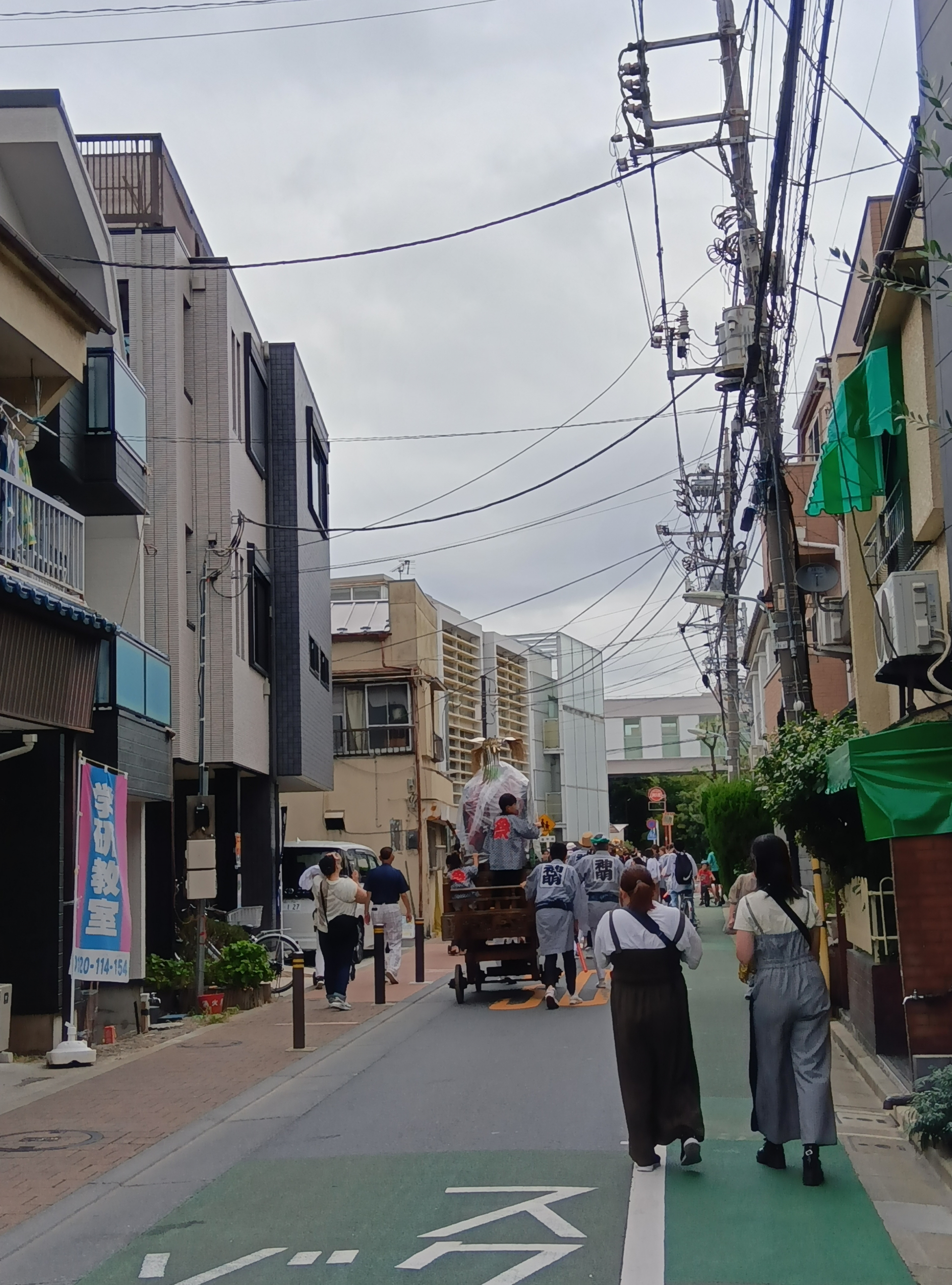 自転車で戻ってきた職員に対してお神輿を先導していた方から、「こんにちは」とお声をかけていただきました。