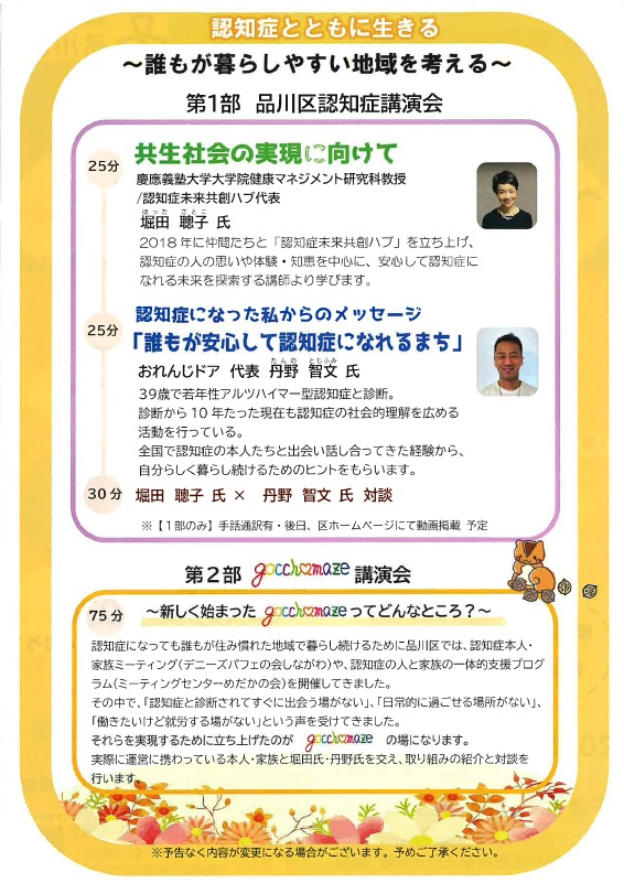 認知症当事者である講師の方のお話を聞ける機会もありますので、足を運んでみてはいかがしょうか。