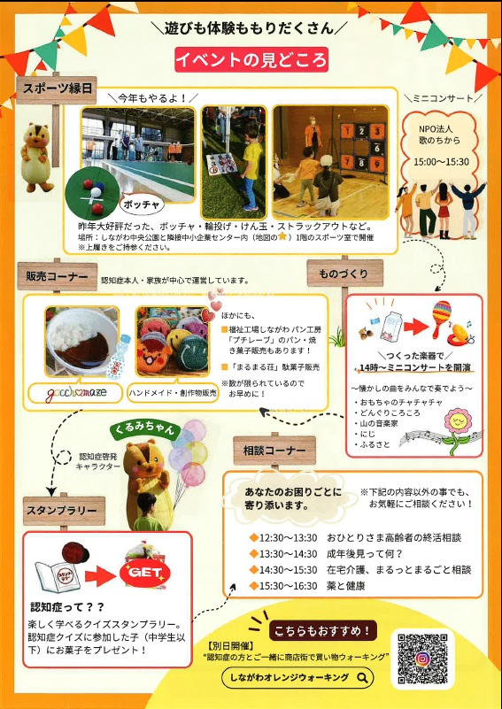 こちらのイベントでは認知症を学べるクイズスタンプラリーや、ハンドメイド・創作物の販売、相談コーナーなどが予定されています。