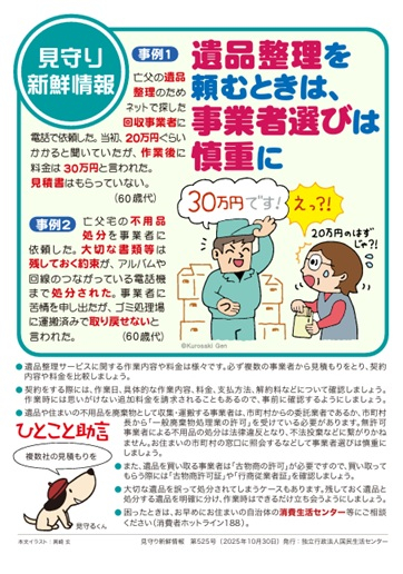 国民生活センターより遺品整理を事業所へ依頼する際の注意喚起です。