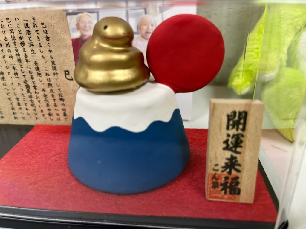 良い一年になりますよう、弥生の園居宅入口に富士山に乗った巳さんを飾りました!