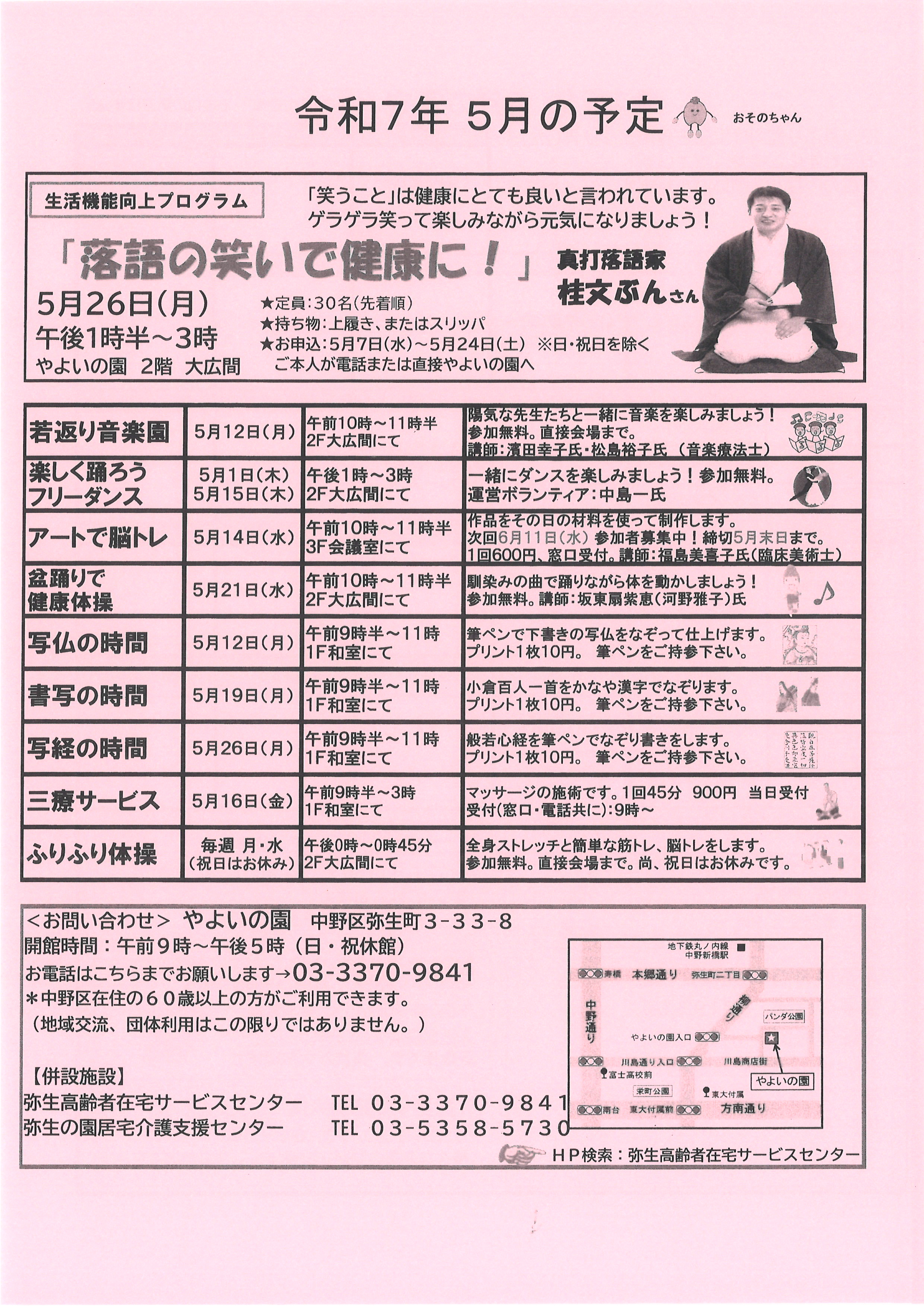 お申し込みは【やよいの園】03-3370-9841 まで お願いします。