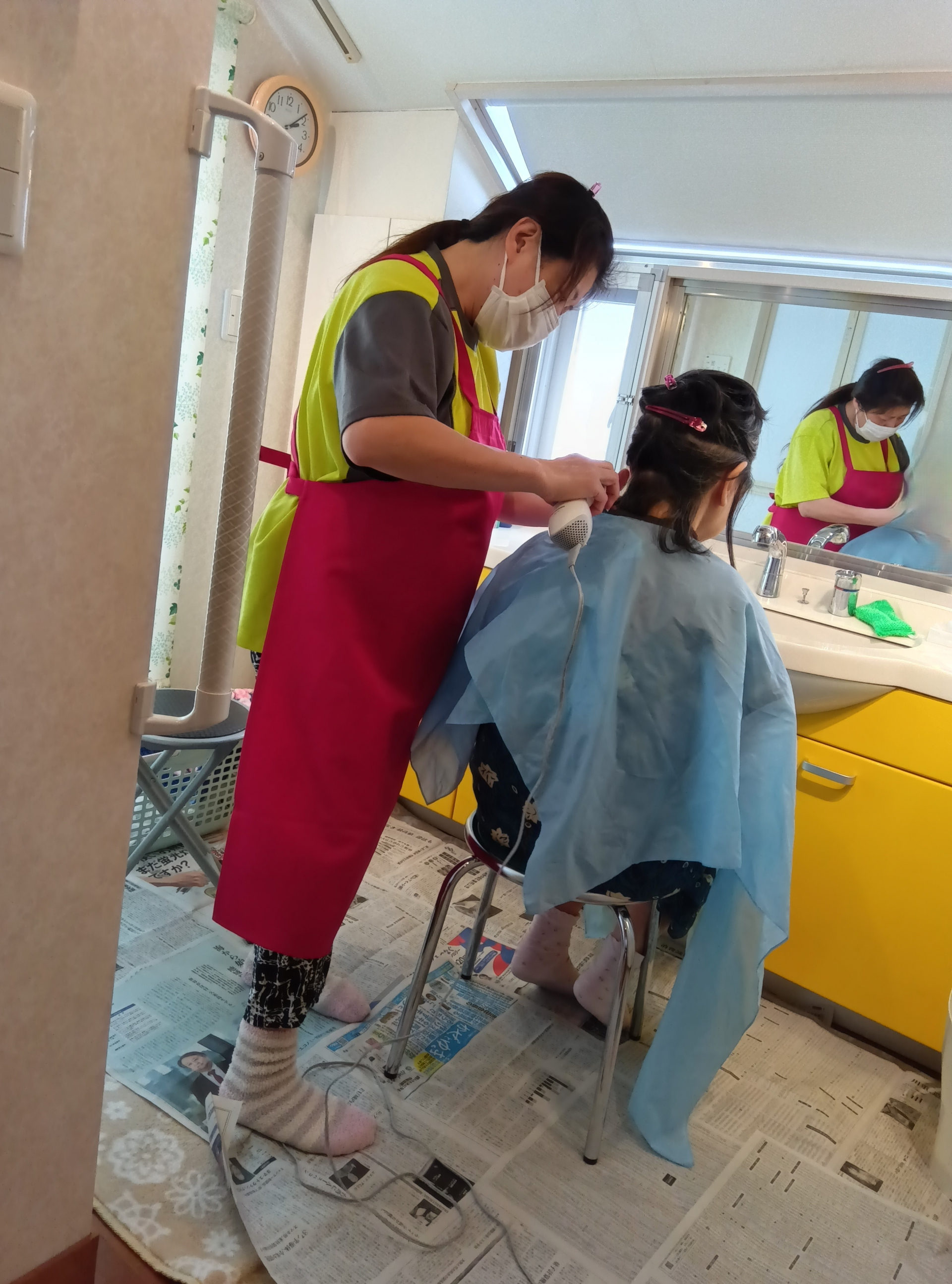 利用者様のMさんも10センチ以上カットし「すっきりしました」とにっこりされていました。