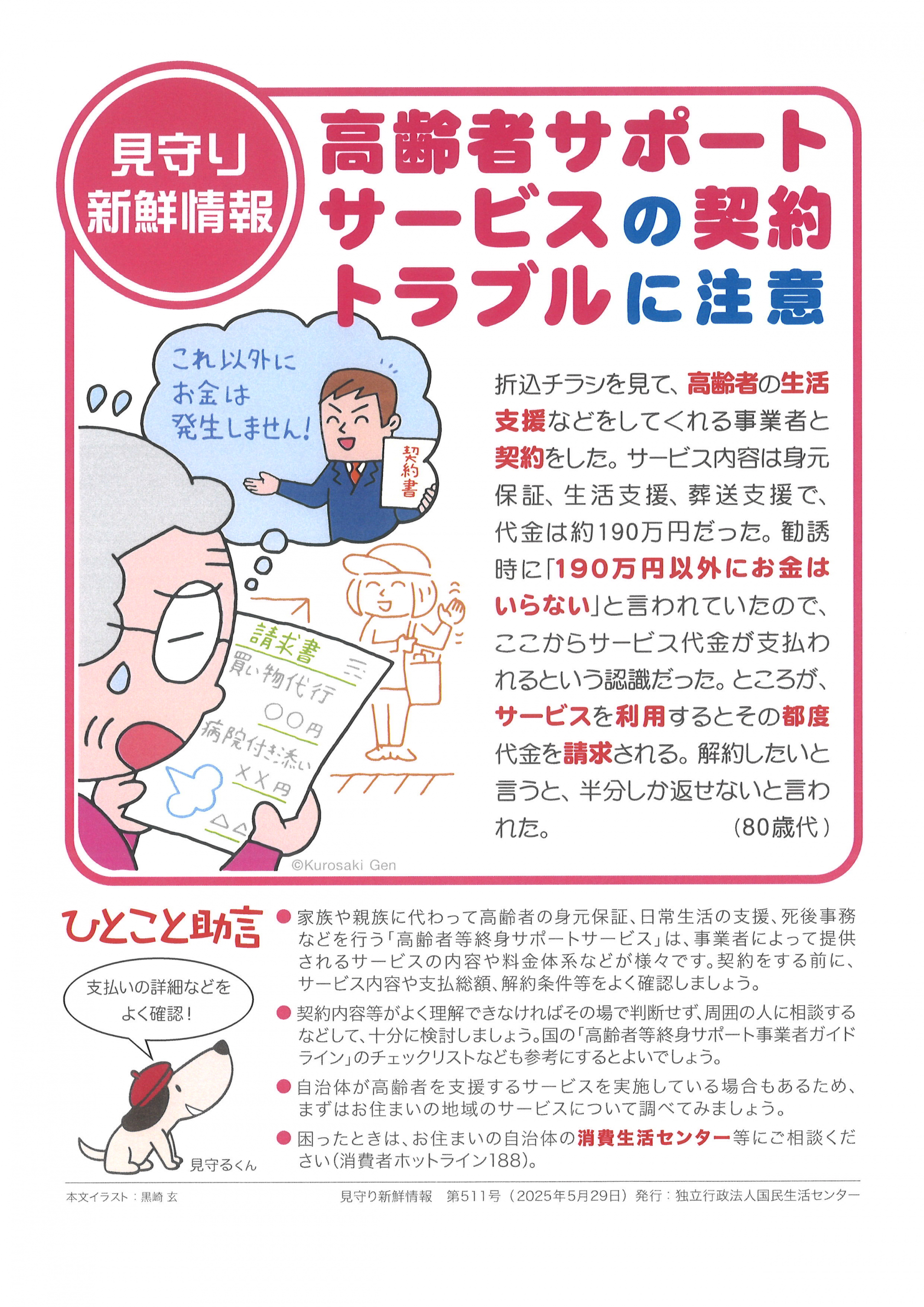 【弥生の園居宅】高齢者サポートサービスの契約トラブルに注意!