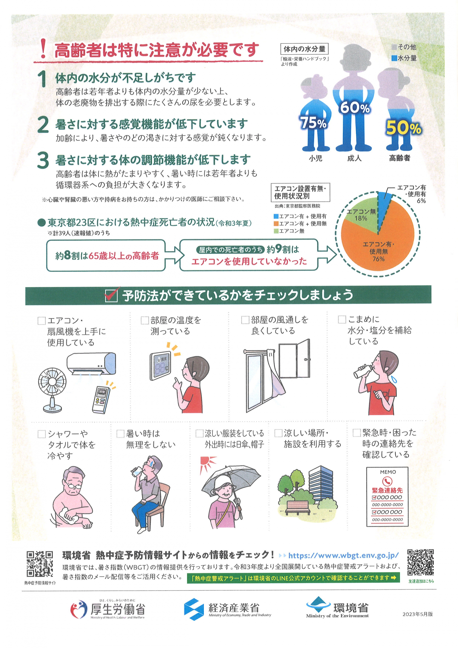 繰り返しになりますが、熱中症の予防には、水分補給と暑さを避けることが大切です。