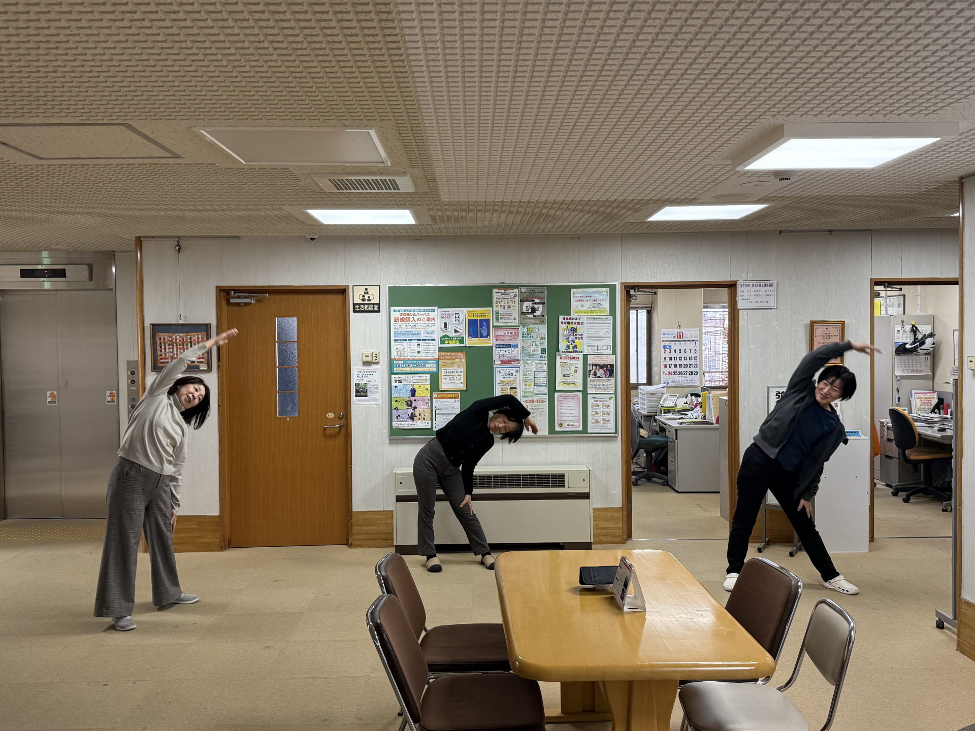 みんなで相談して勤務前に「ラジオ体操第一」を行なうことにしました!