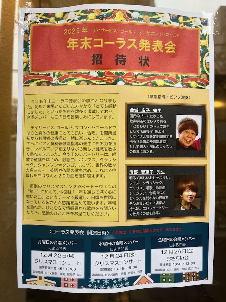 【弥生の園居宅】デイサービス・ゴールド♪クリスマスコンサート☆