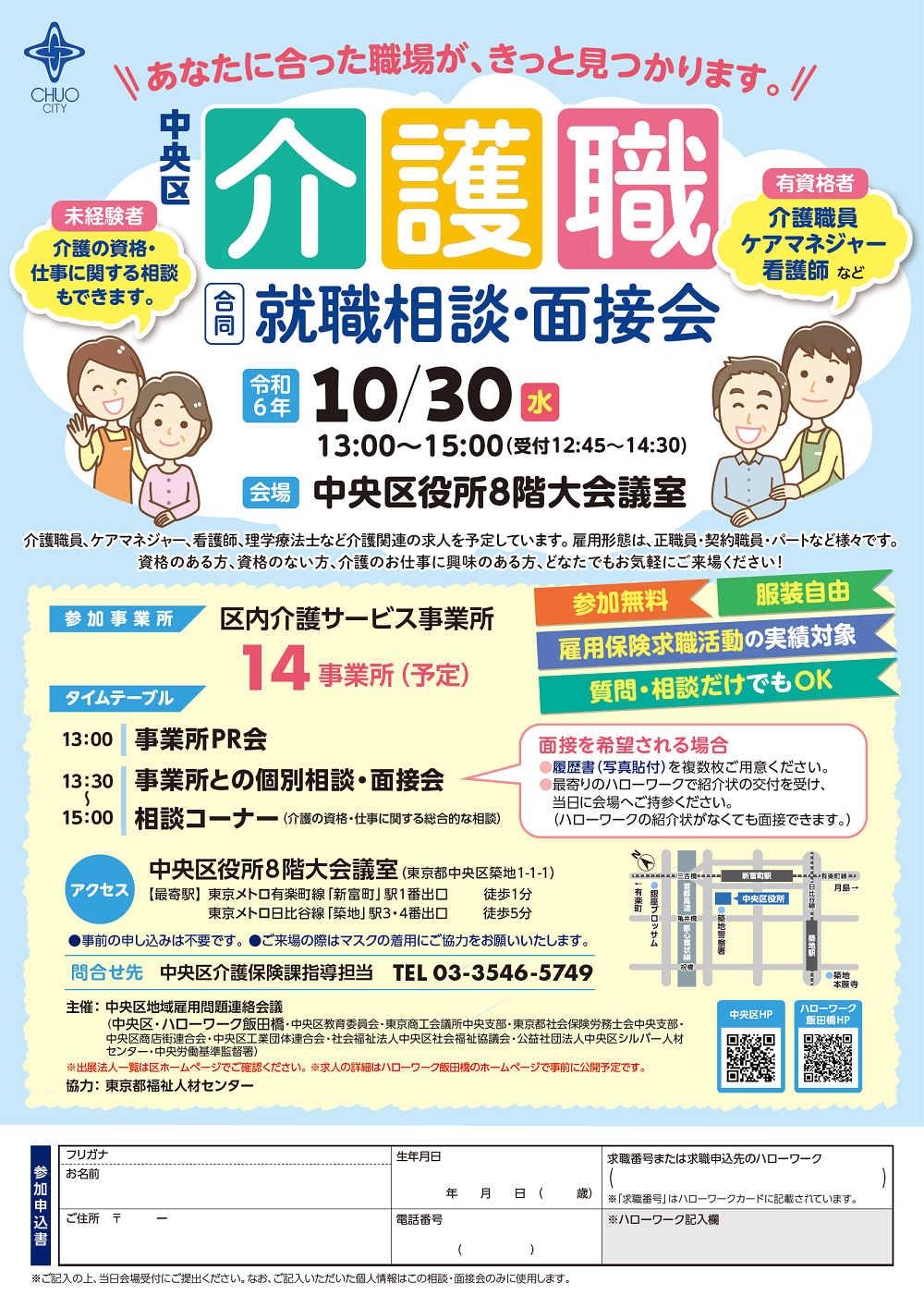 10月30日(水)開催「中央区介護職合同就職相談・面接会」参加のご案内