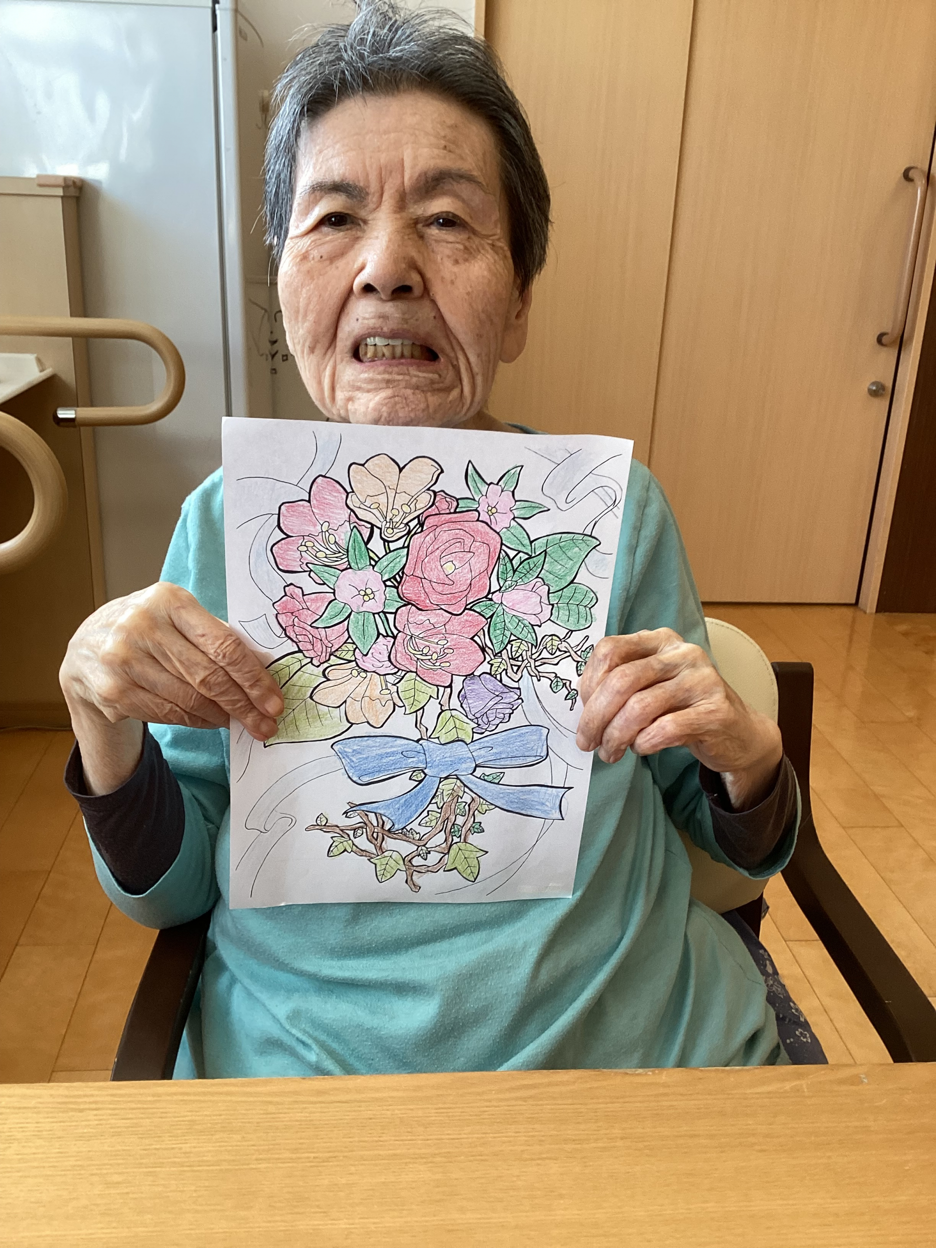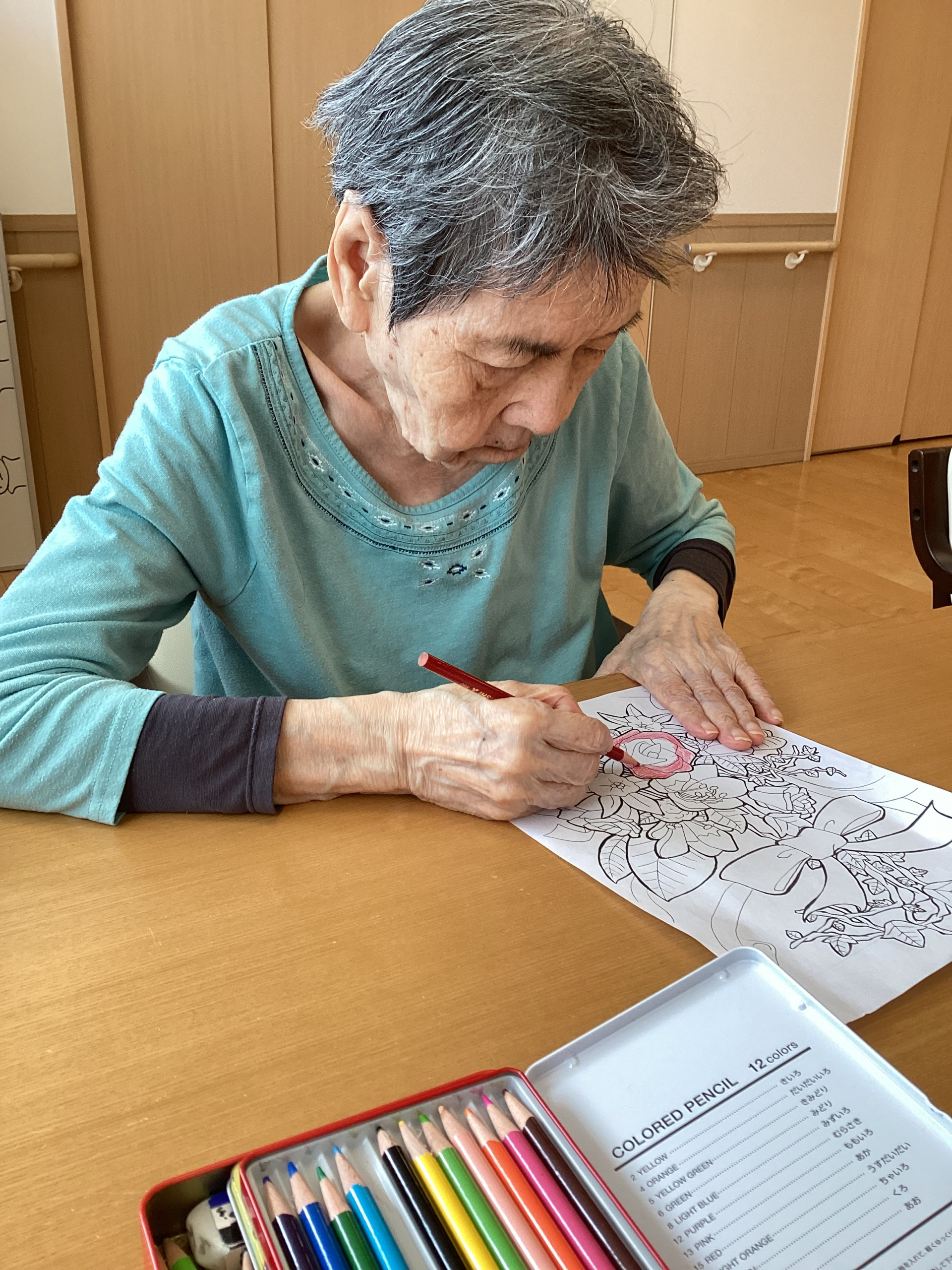 皆さんこんにちは!今日は塗り絵をして楽しみました!