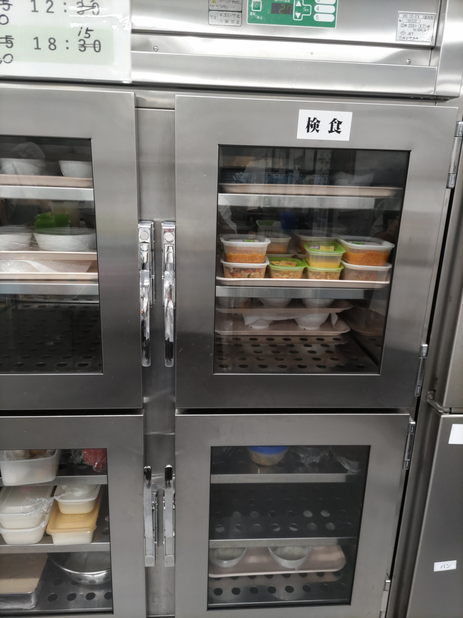 こちらもユニット型配膳施設の1つですが、厨房に冷蔵庫ならぬ温蔵庫が設置されていました。温かいものを配缶して直前まで保温しておく、まさに、温かいものは温かいまま提供できる優れものです。同じユニット型の施設でも、施設によって配缶・配膳方法はさまざまで、勉強になります。 管理栄養士 K.O