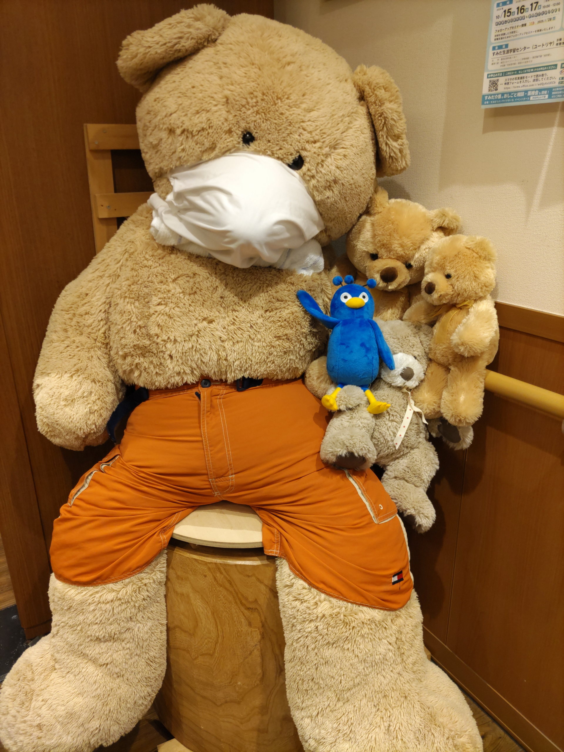 もしかしてと、期待高まる中開封してみると、待ちに待ったクジャペンが!今日から両国のお仲間入りです。早速、当施設のお友達、両国くまおくんにご挨拶。仲良く記念写真を撮りました。  管理栄養士 K.O