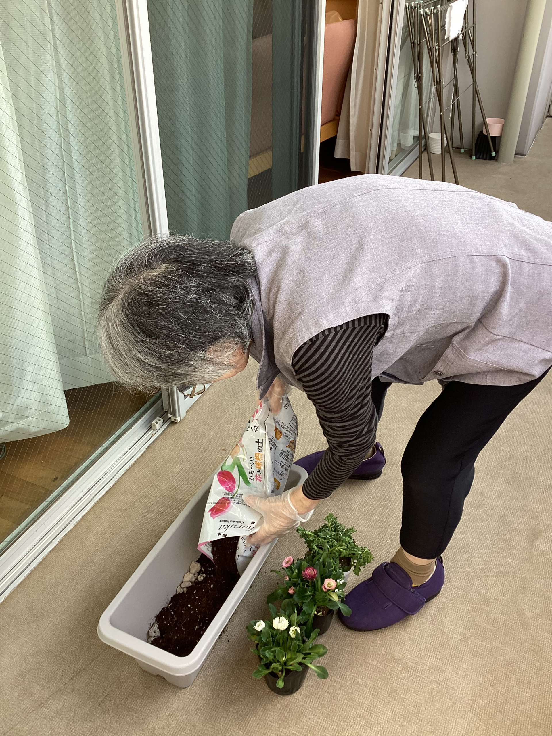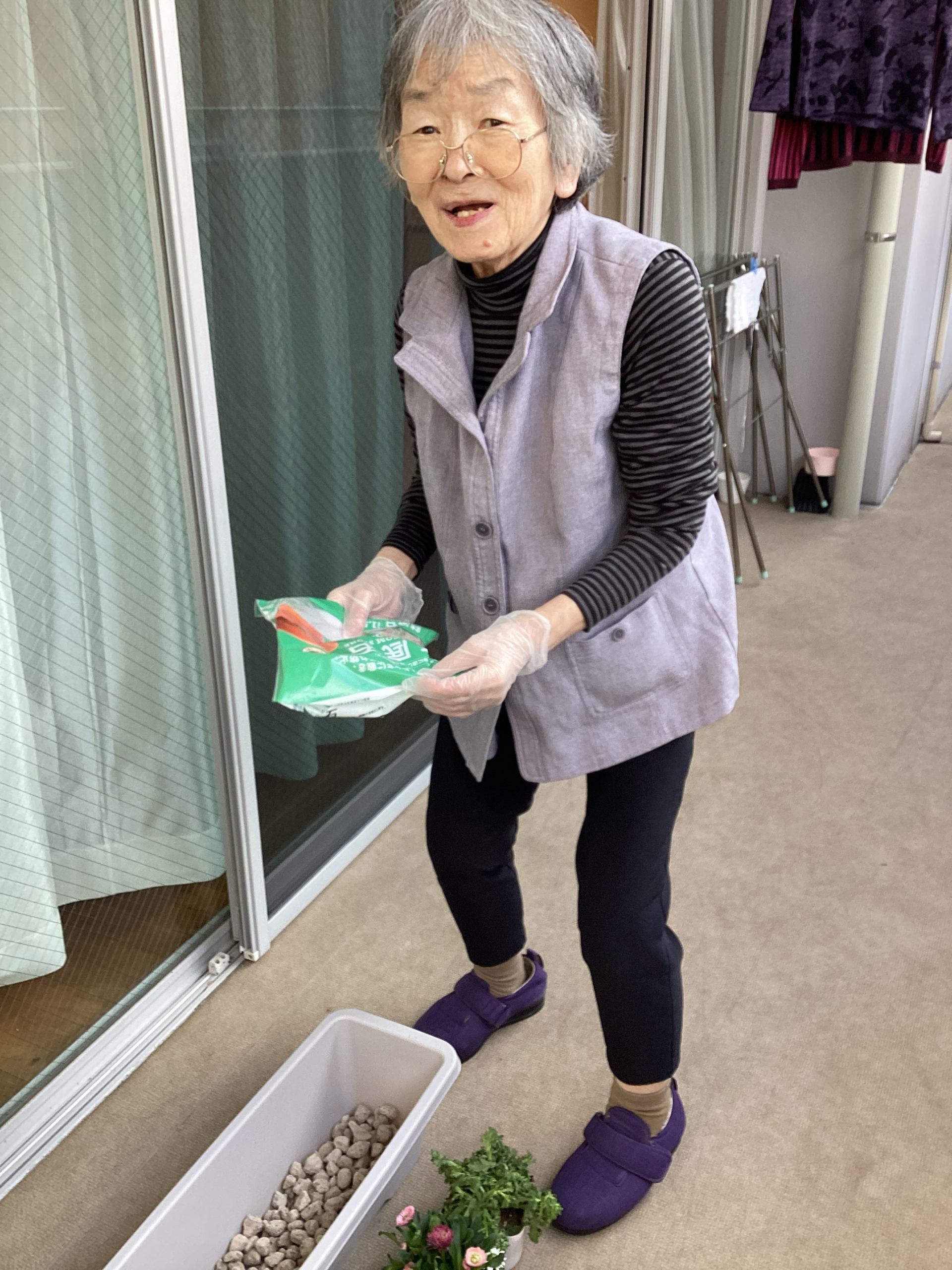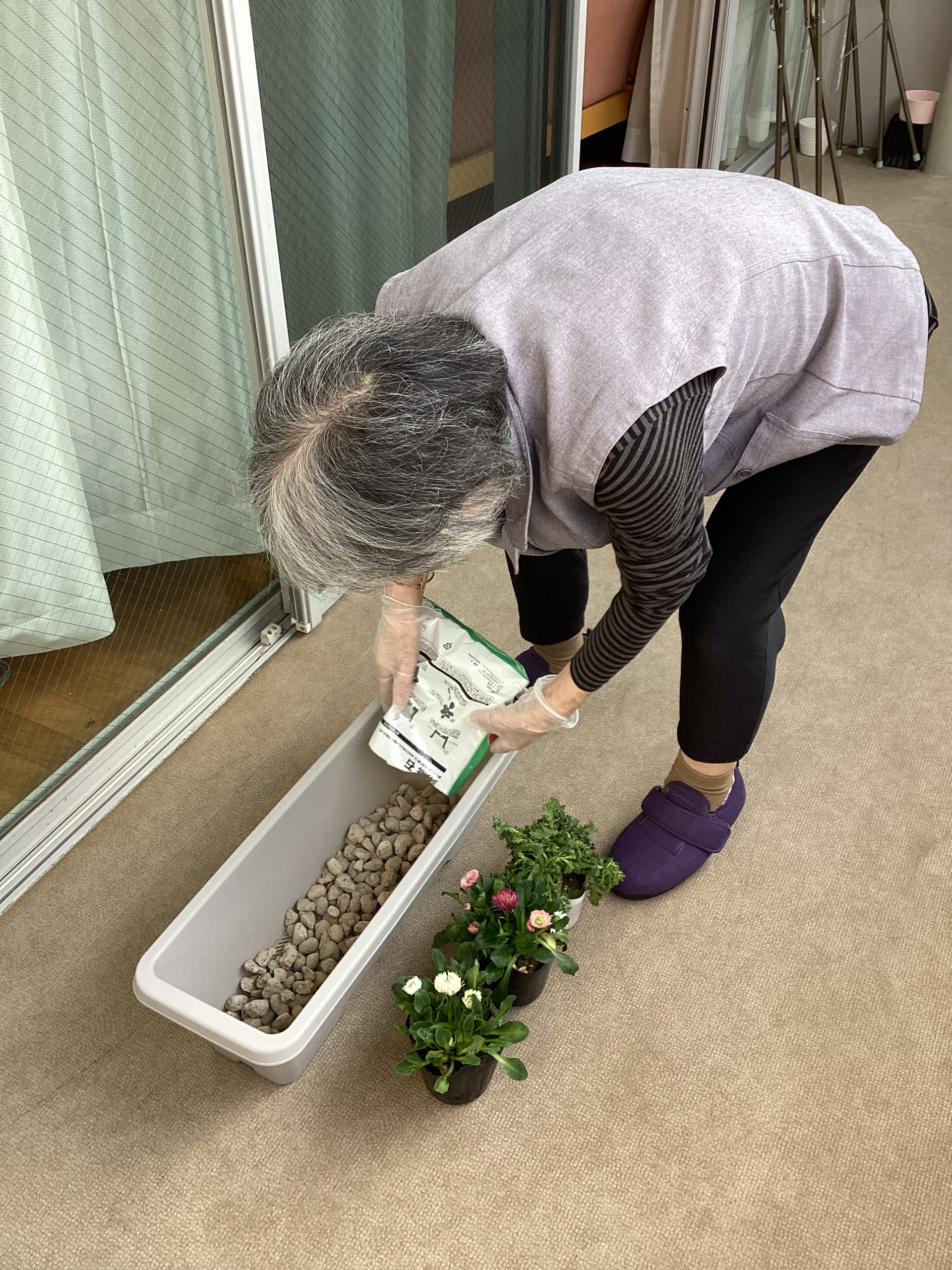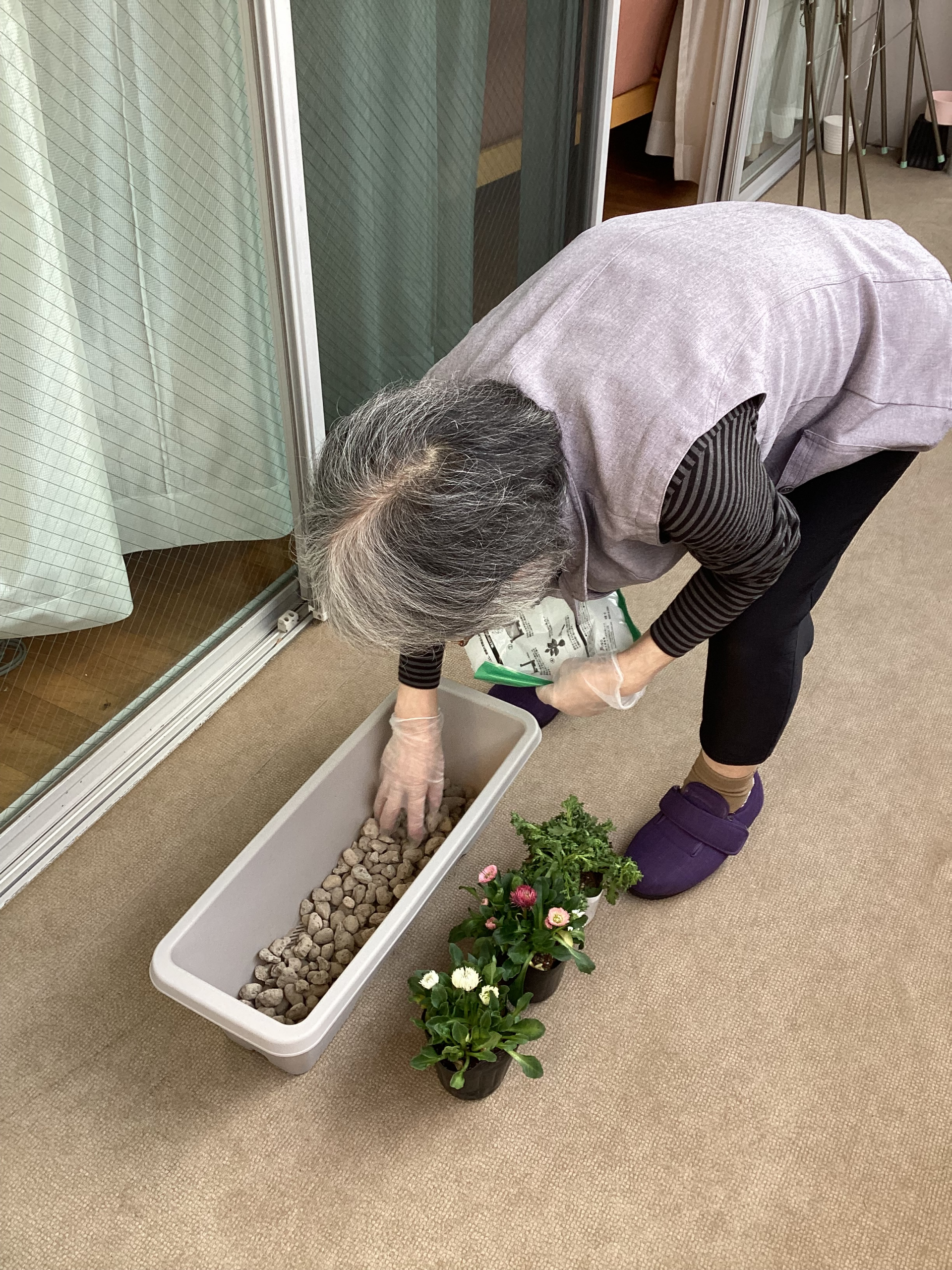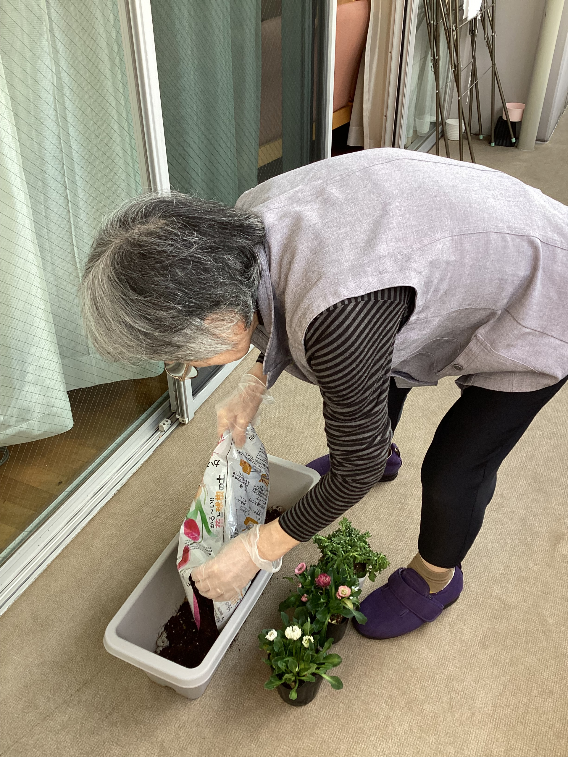 こんなに、やさしく、丁寧に真剣な眼差しで、植木を植え替える○○さんの姿、近くで見届けて。