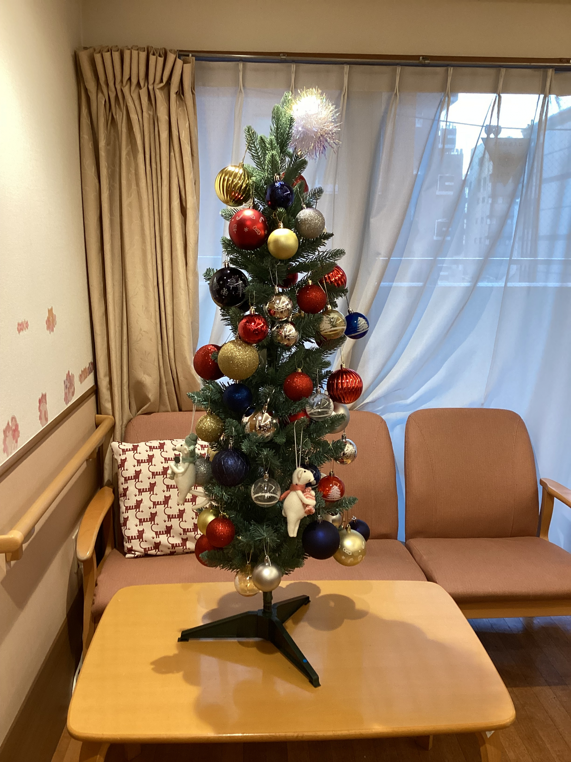 皆さんから「クリスマスツリーが欲しいね」とリクエストが上がったので、今年はクリスマスツリーをユニット費で購入しましたー。(パチパチパチ拍手)