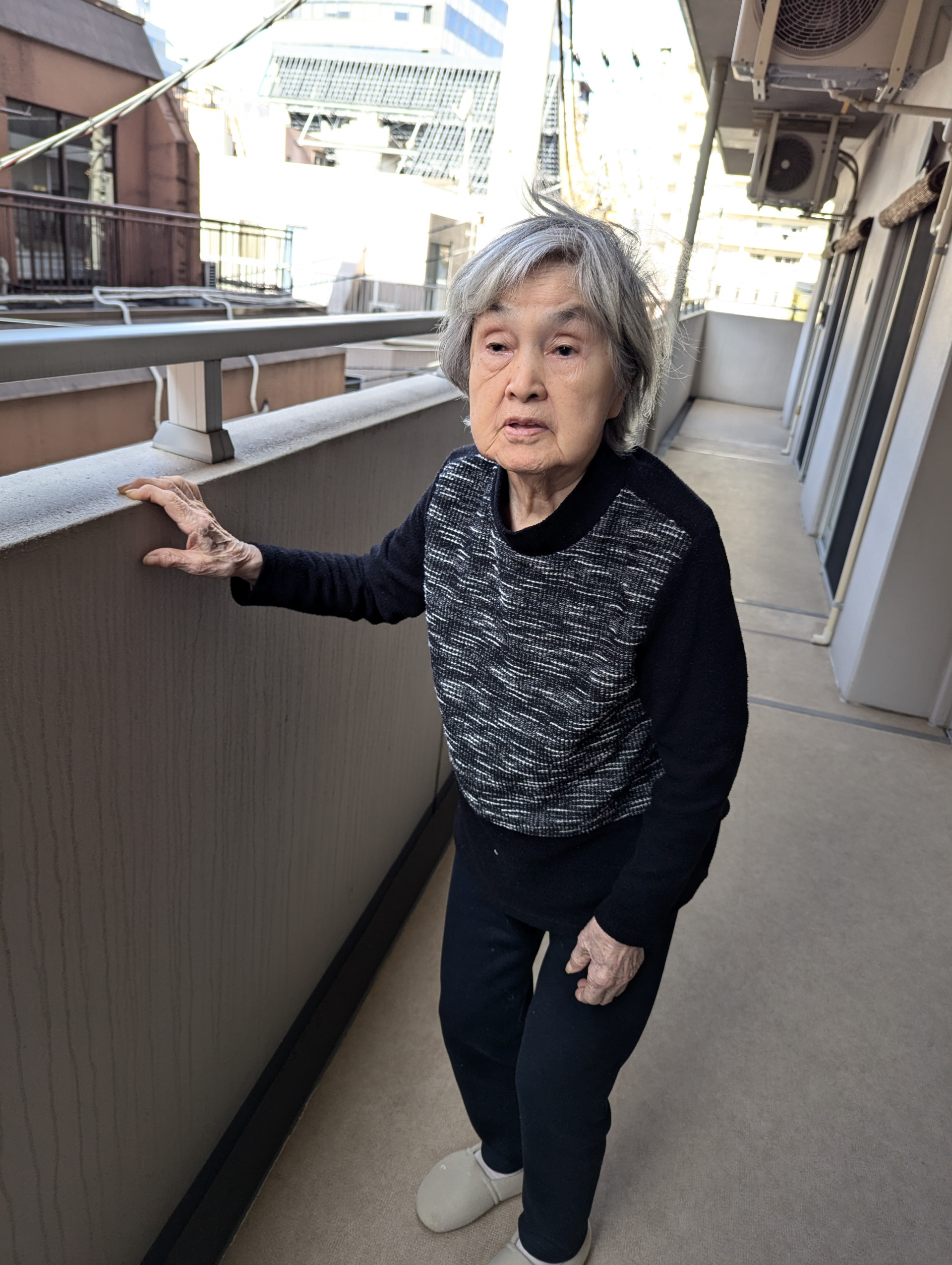 「今日は寒いですよー」と一緒にベランダに出てみると