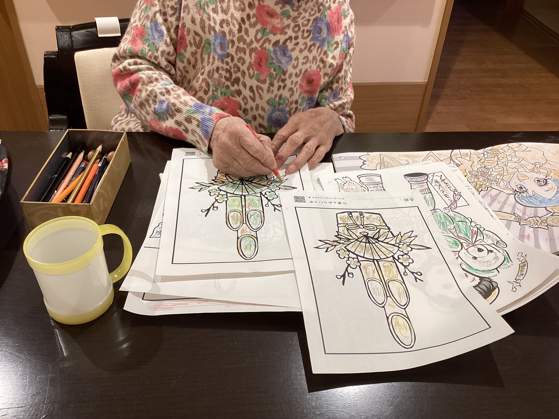 季節ものではないですけど、自分の好きな塗り絵をしています。