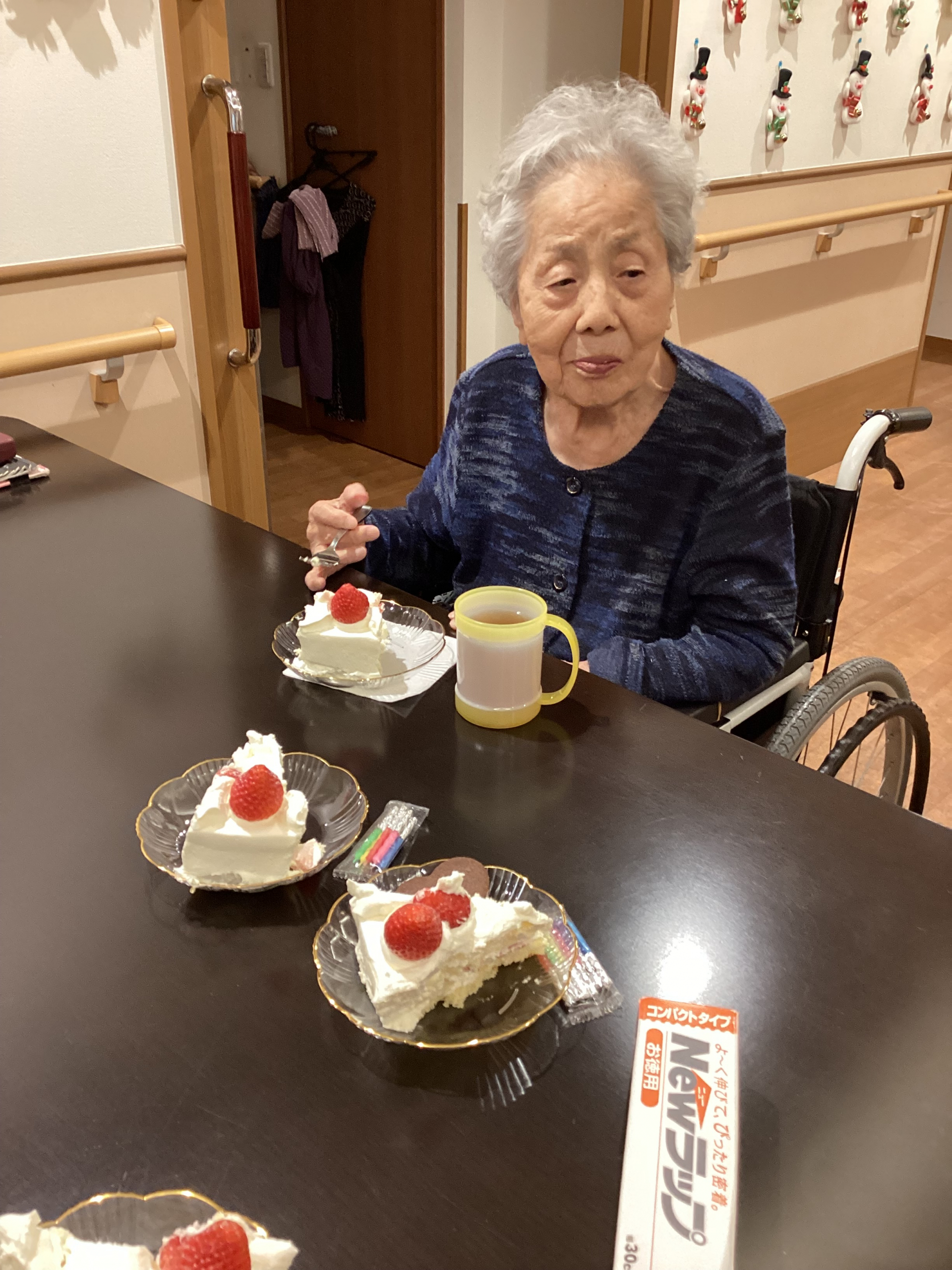 5階に戻ったら皆さんの手元には、ケーキが・・・食べ始めてます。「おいしい」