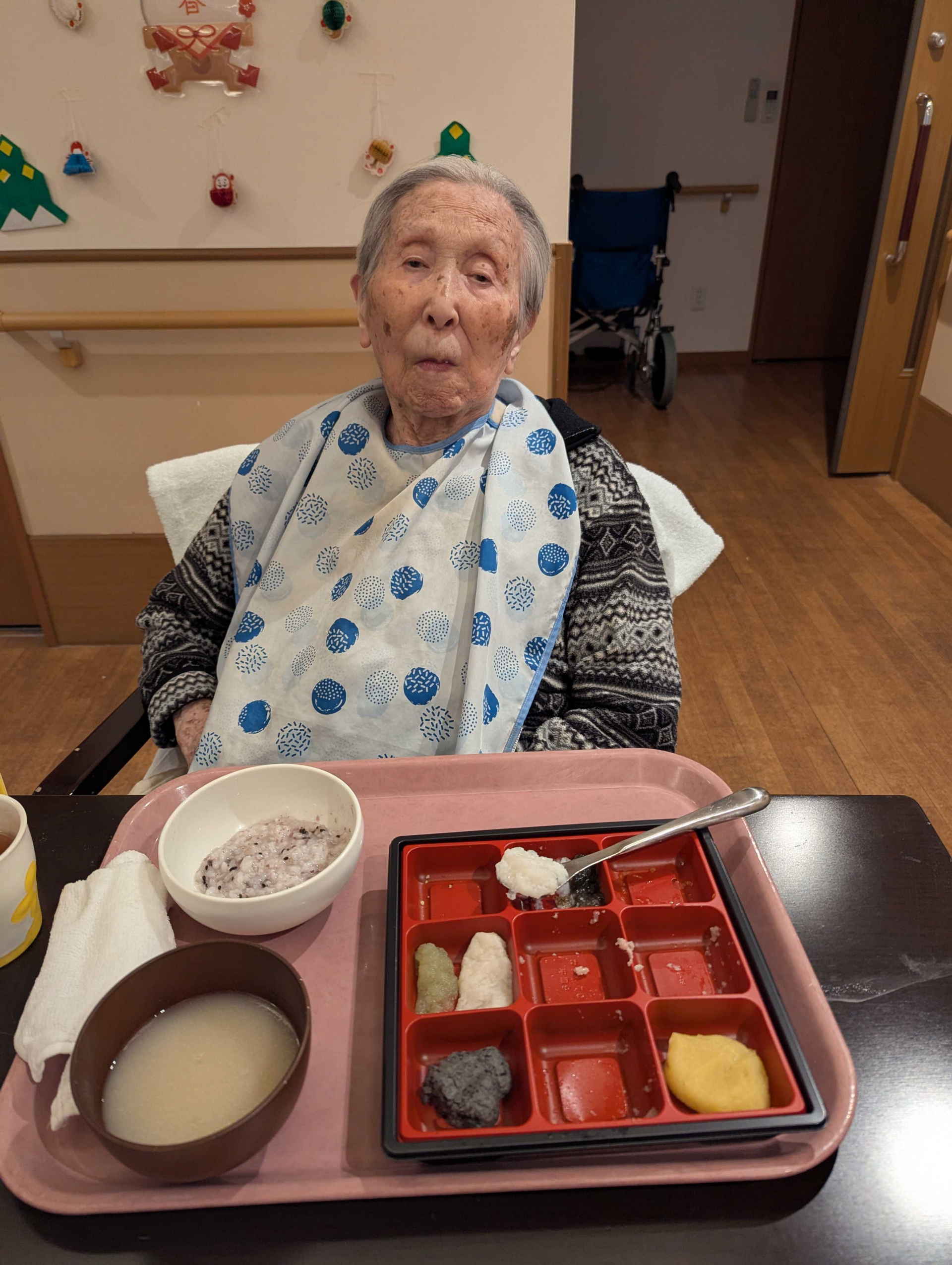2026.01.01 活動報告(IN) おせち料理 Tweet シェアする 元旦のおせち料理のソフト食はこんな感じでした! 皆様、ご馳走を前にじっくりとご覧になってから召し上がられていましたよ。 お味も良かったようで、ほとんどの方が完食されました♪ 介護課 竹腰 前の記事 2026.01.01 活動報告(IN) お正月 次の記事 2026.01.01 活動報告(IN) 初詣② 一覧へ戻る