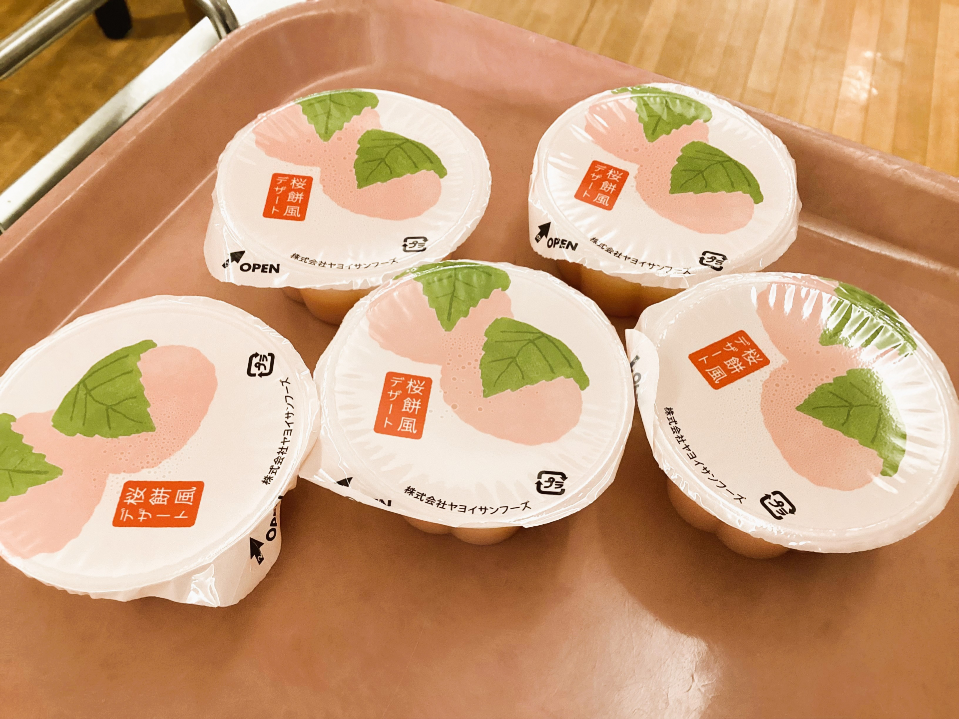 おやつは桜餅風デザートでした、中はくちどけの良い羊羹のような