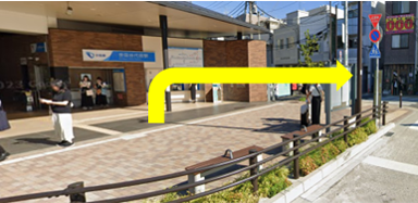 ❶改札を出てロータリー左手を進みます。