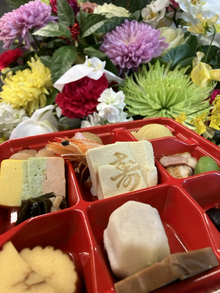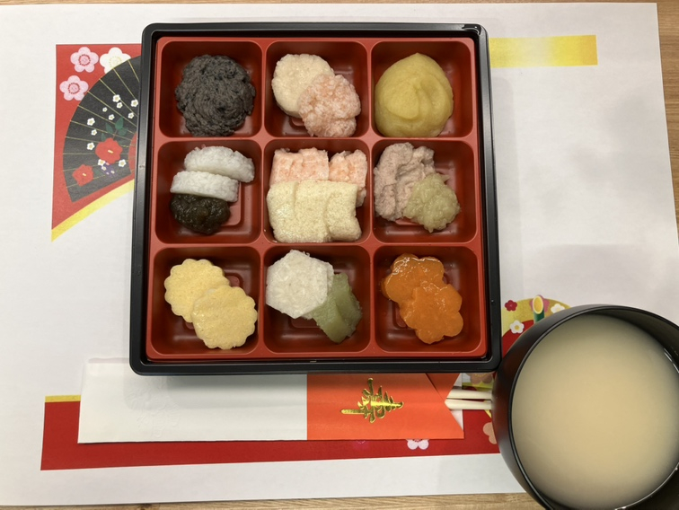 元旦には、管理栄養士が中心になって、彩り豊かなおせち料理をご用意しました。