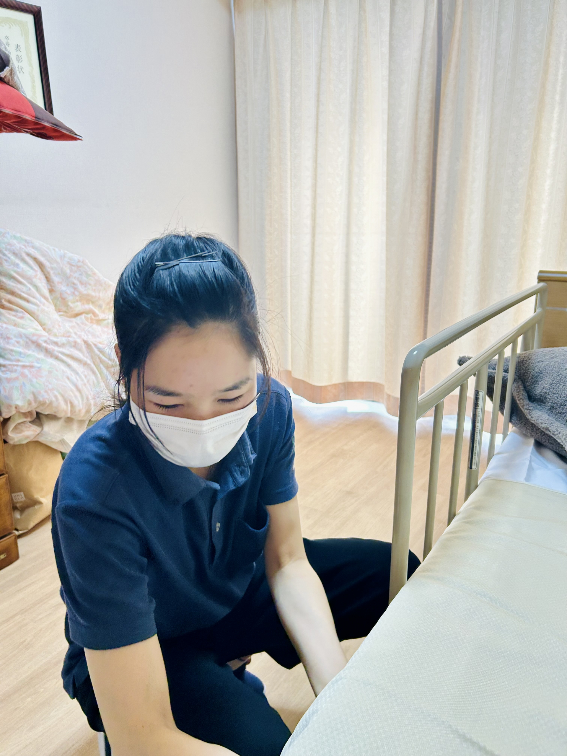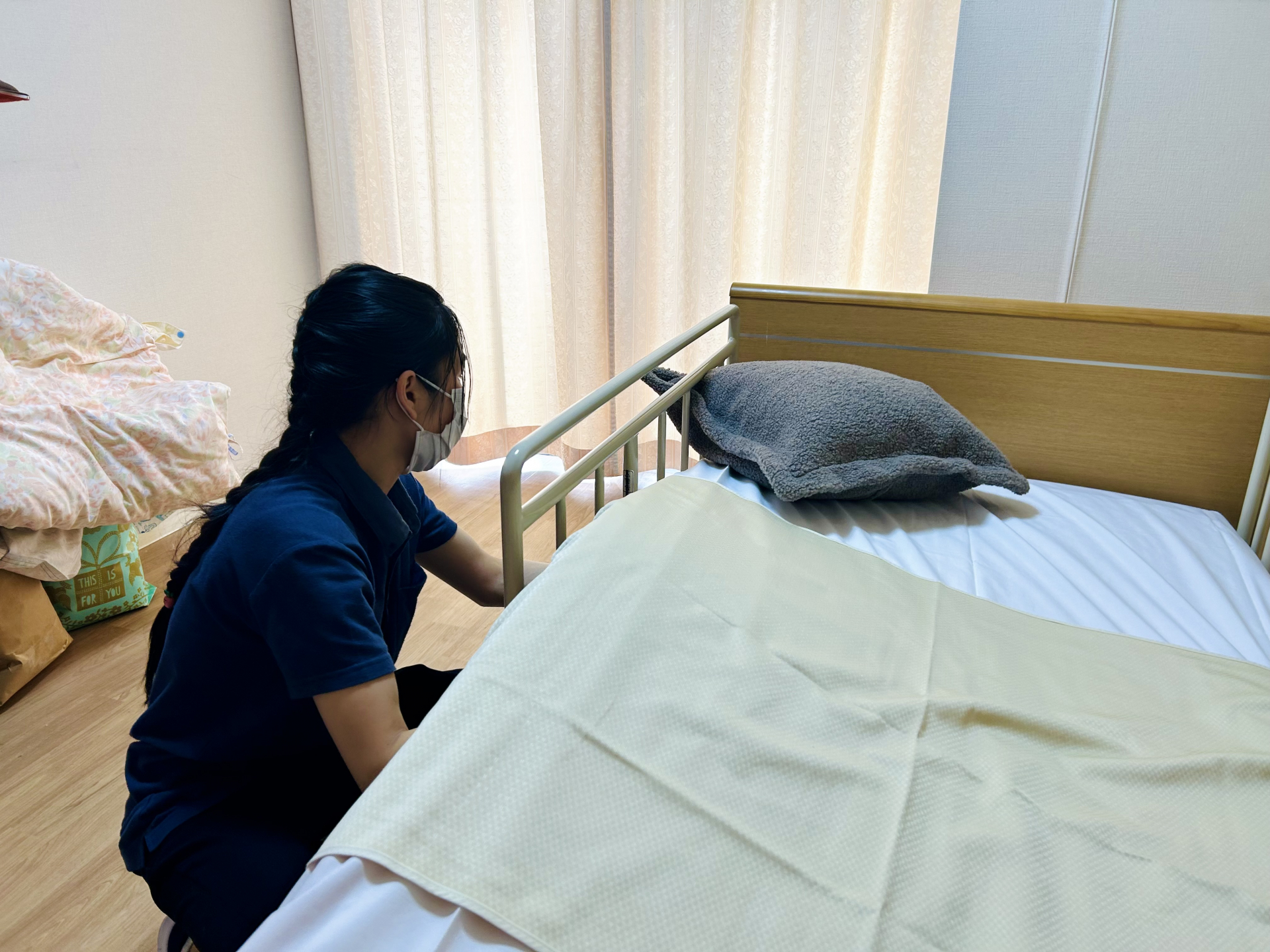 おやつ後、居室に戻り新しいシーツを見ると、うれしいと思いました☺