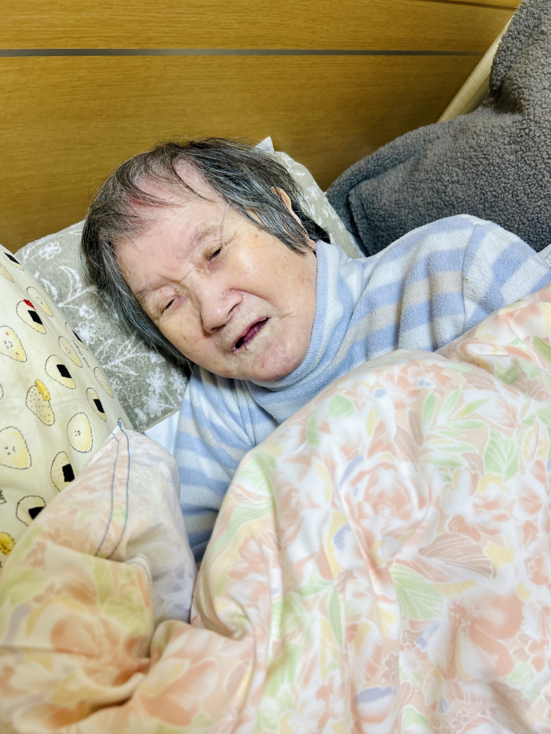 「新しいシーツを交換しましたよ。おやすみなさい。」と声をかけると「ありがとう。」と仰いながら喜びました( *´艸`)