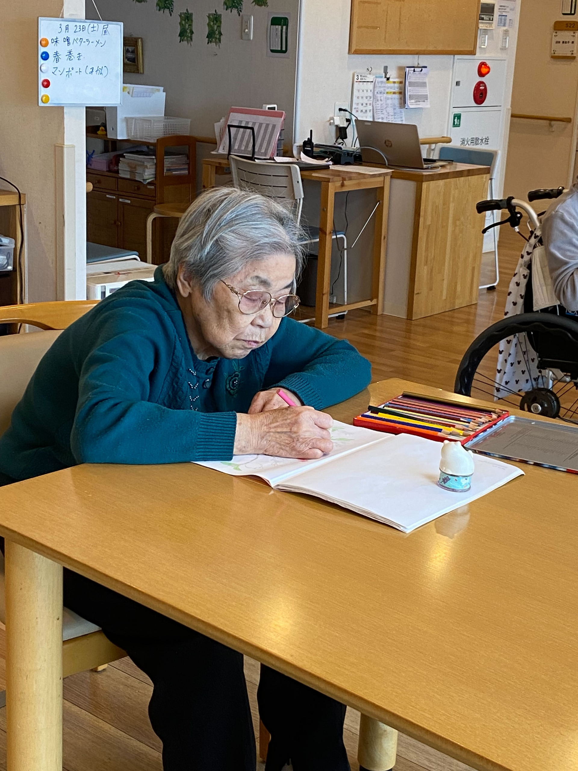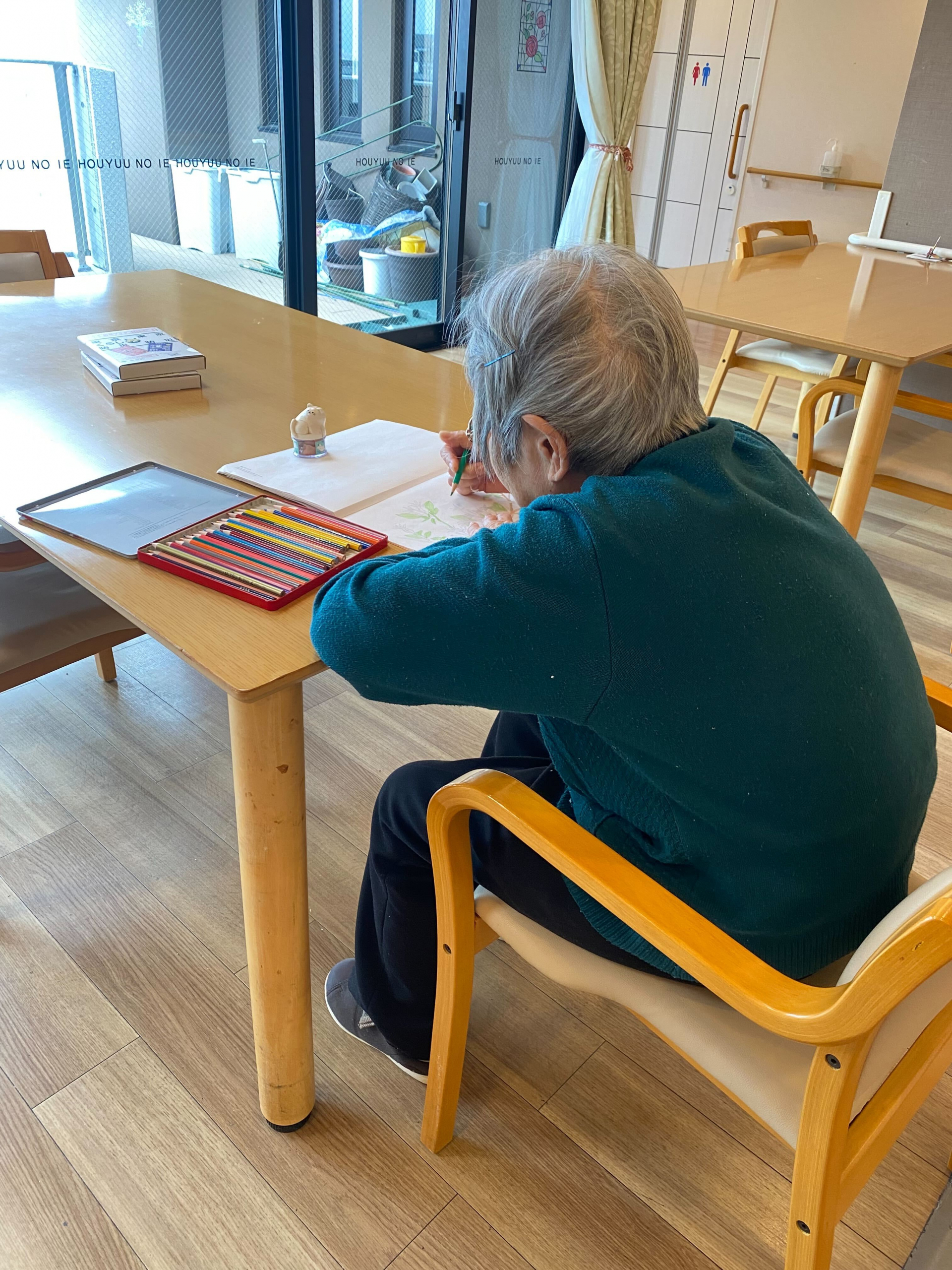 ご利用様さんがすごく集中して、丁寧に塗り絵をやっていました。