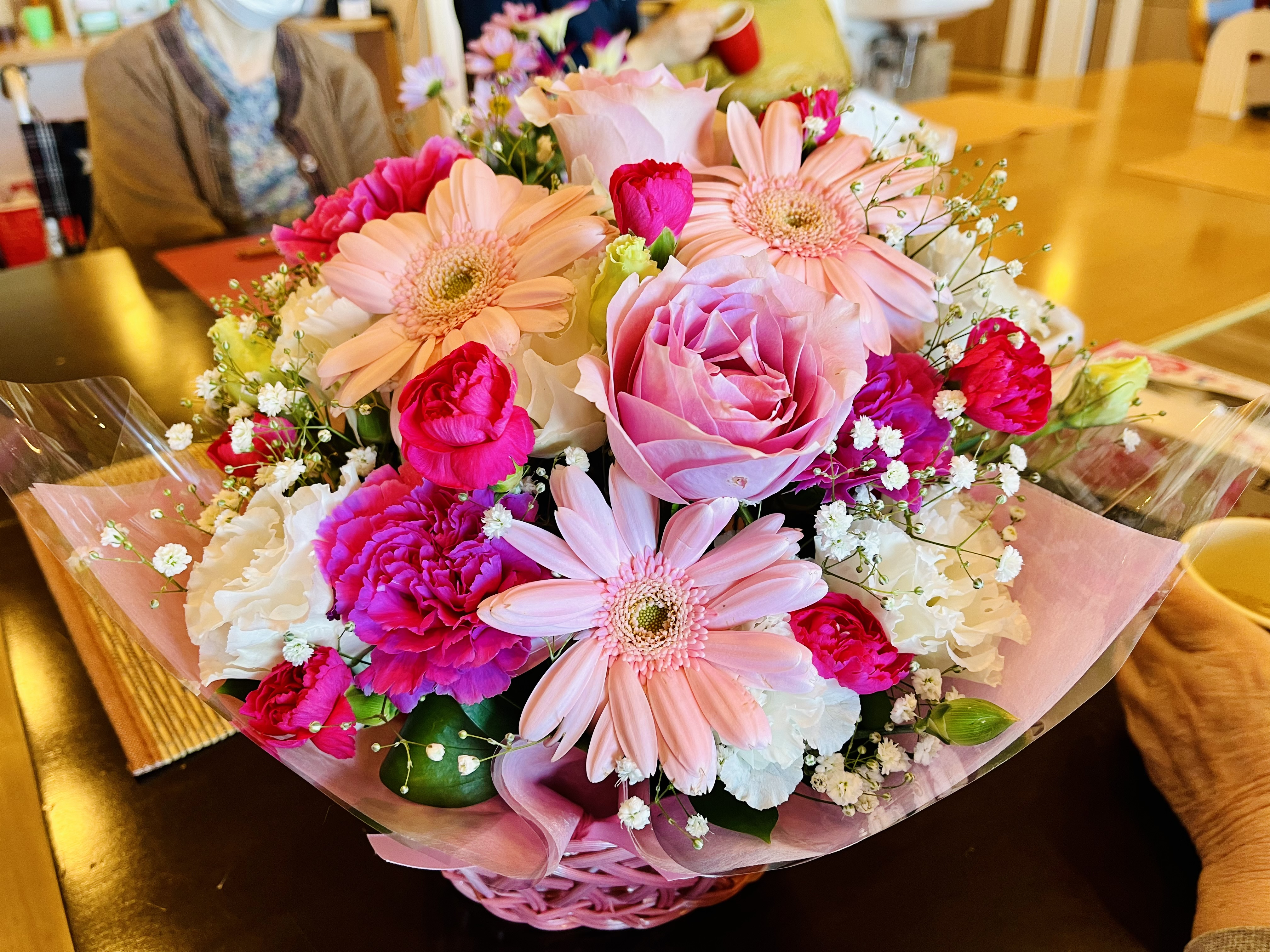 先日、ご家族様が面会へ来て綺麗な花籠をお持ちくださいました(*´ω`*)