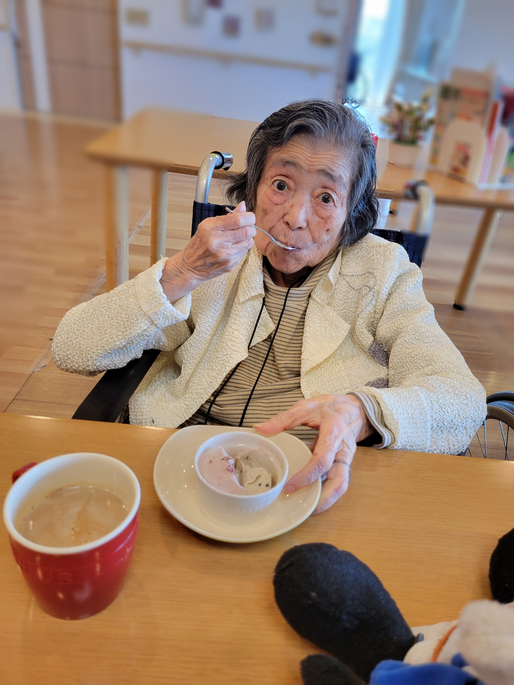 本日は、最近熱くなってきたので3時のおやつにアイスを提供しました!その時のご利用者様の様子をご紹介します(*>0<*)