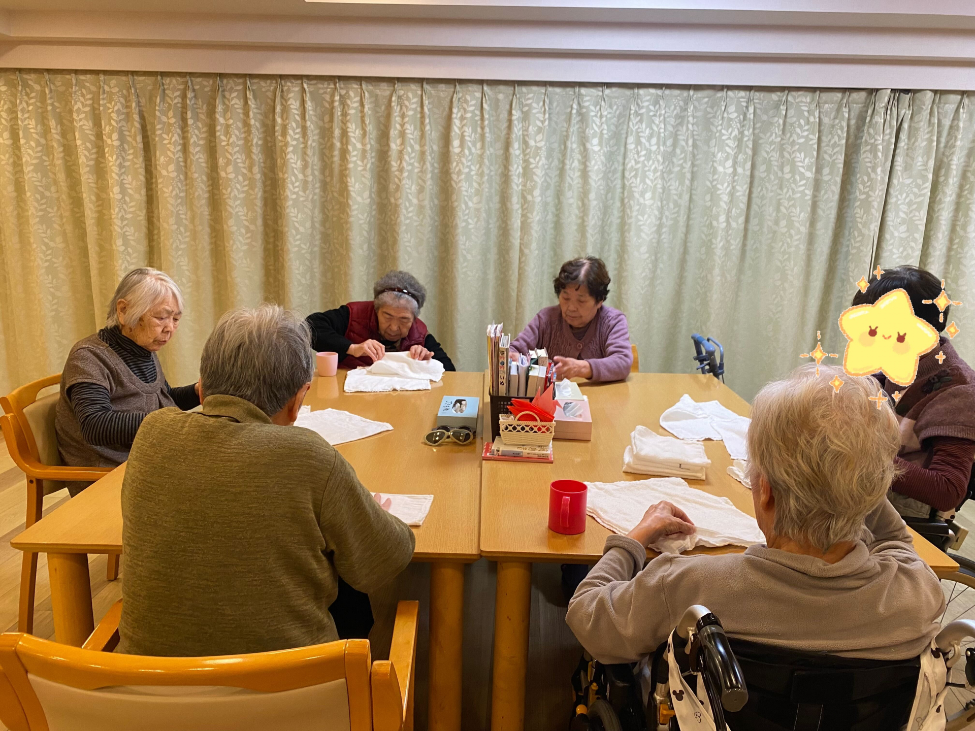 夕食後、「何か手伝いことありますか」「お仕事頂戴」とお言葉をくださいました。