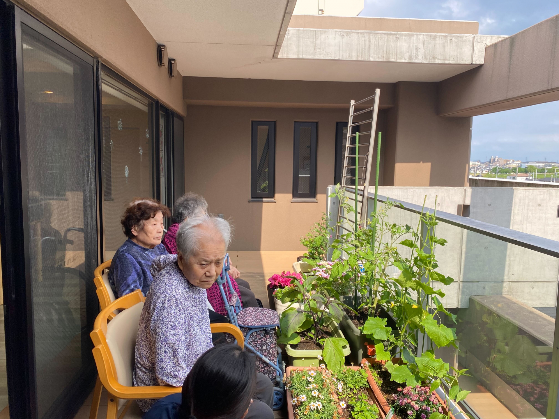 ベランダの菜園再開時点からよく気になり、ベランダに出たいご利用者様が増えて、嬉しいです。