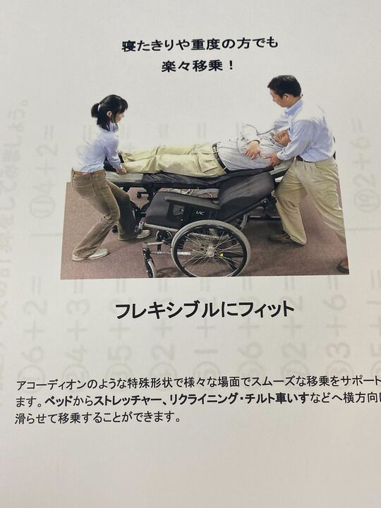 フレックスボードはご利用者様を横に滑らせるように移乗を行うものです。